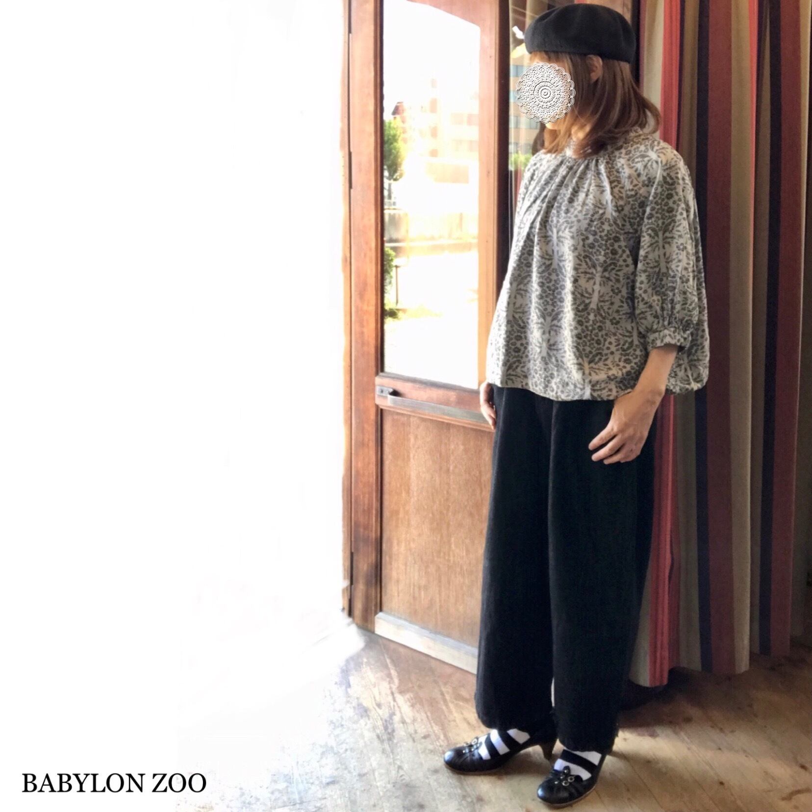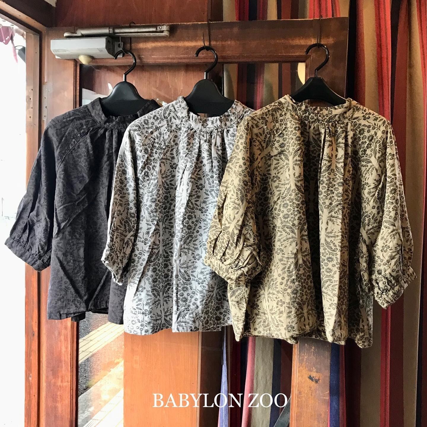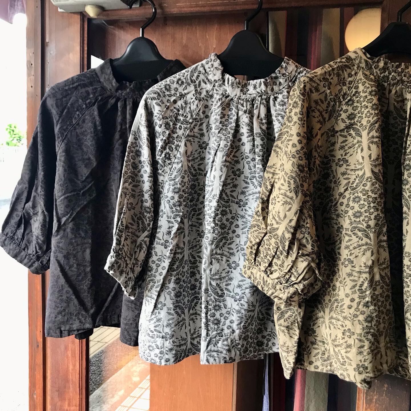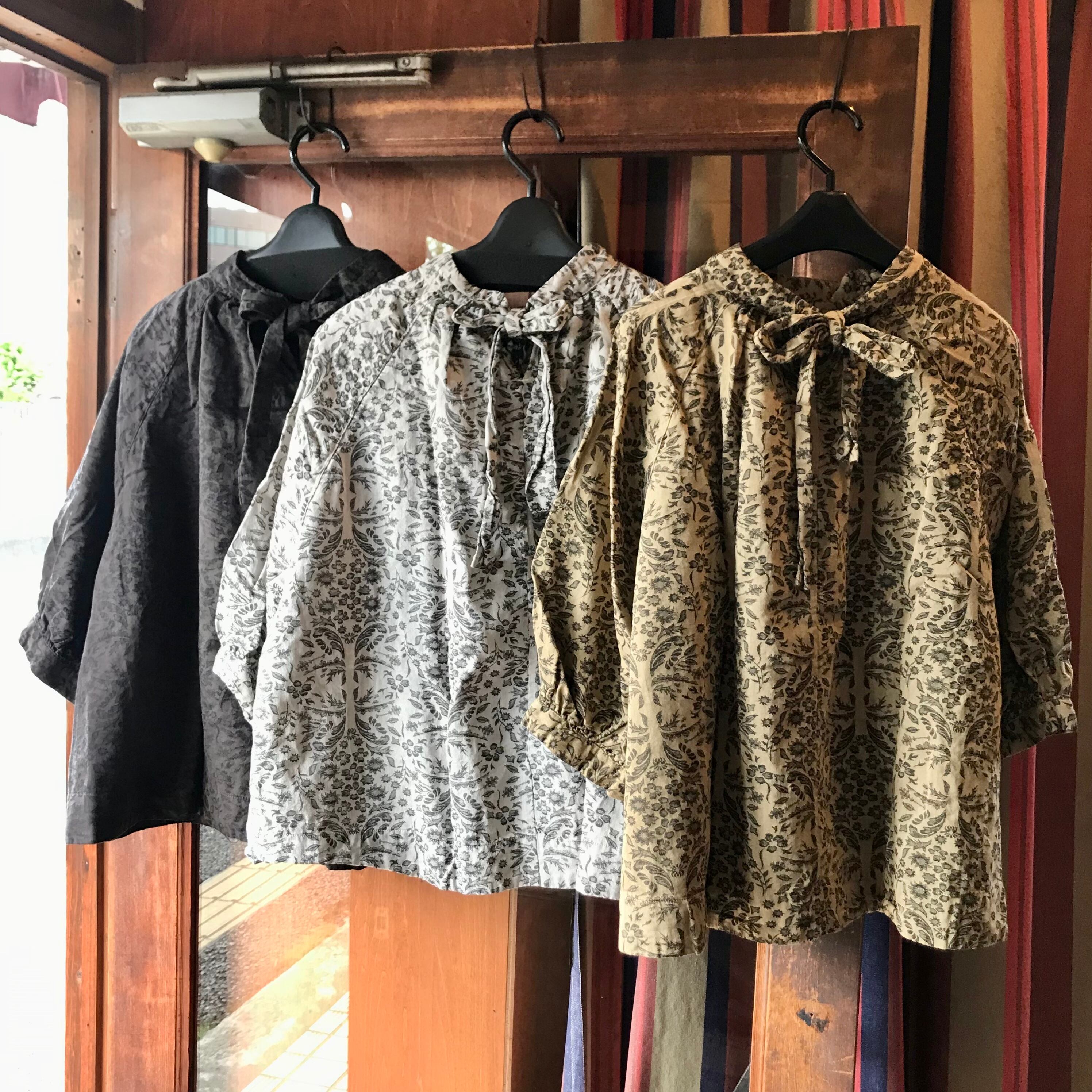 シックな色合いのジャガード素材を使用した秋にぴったりなブラウス。