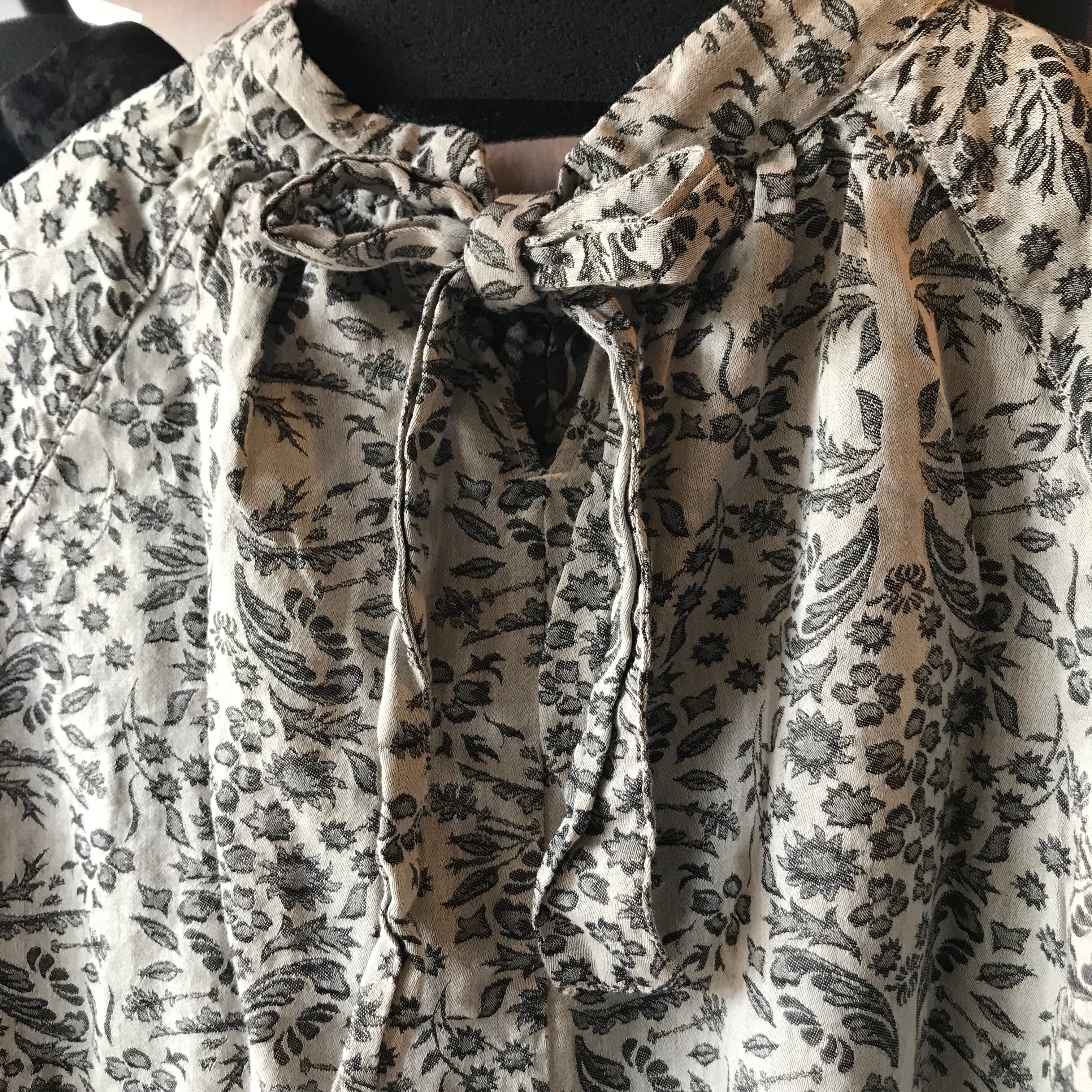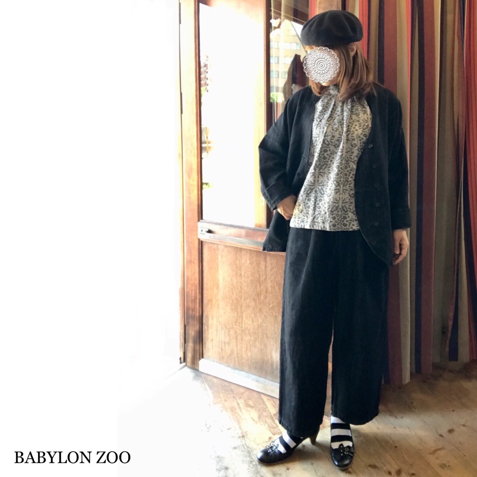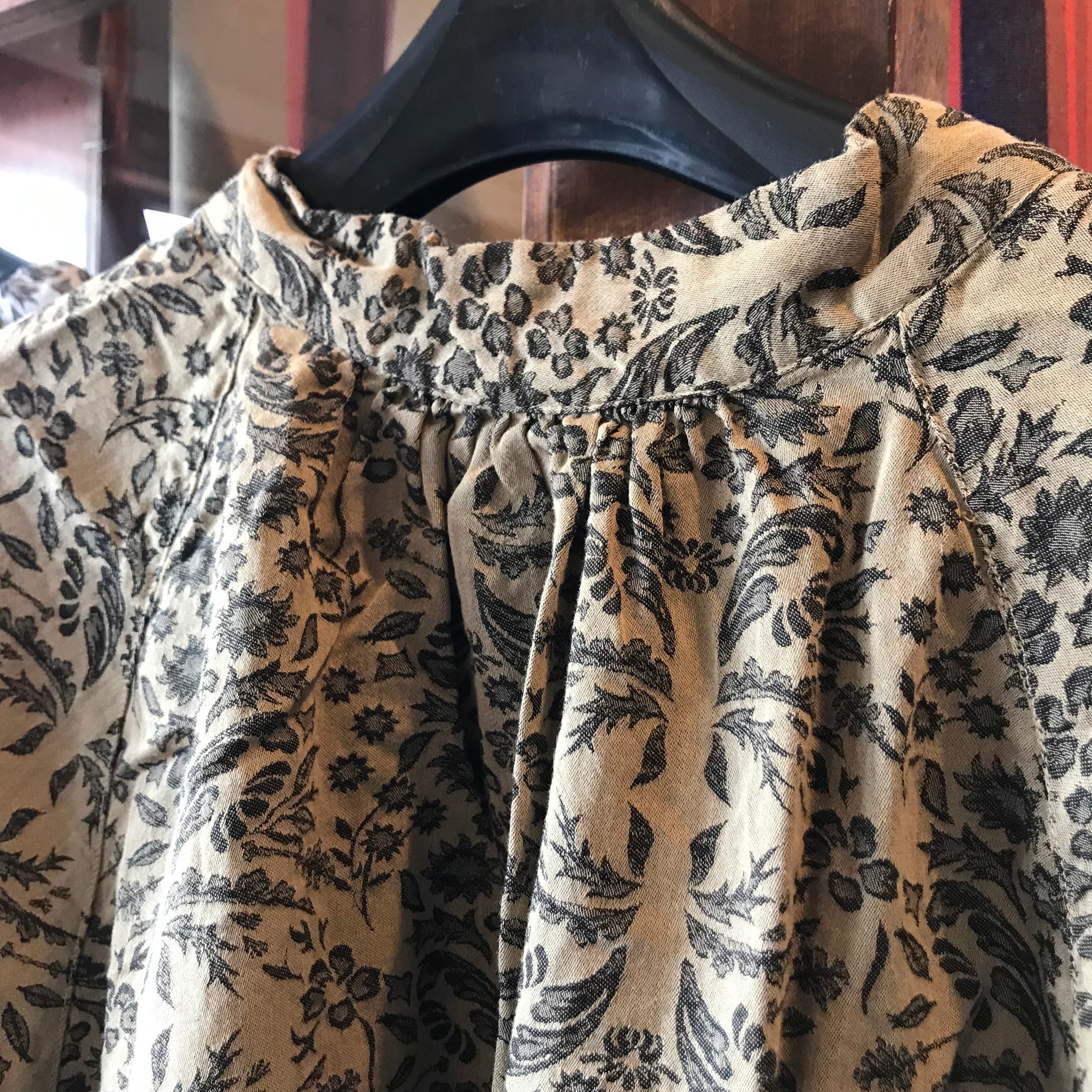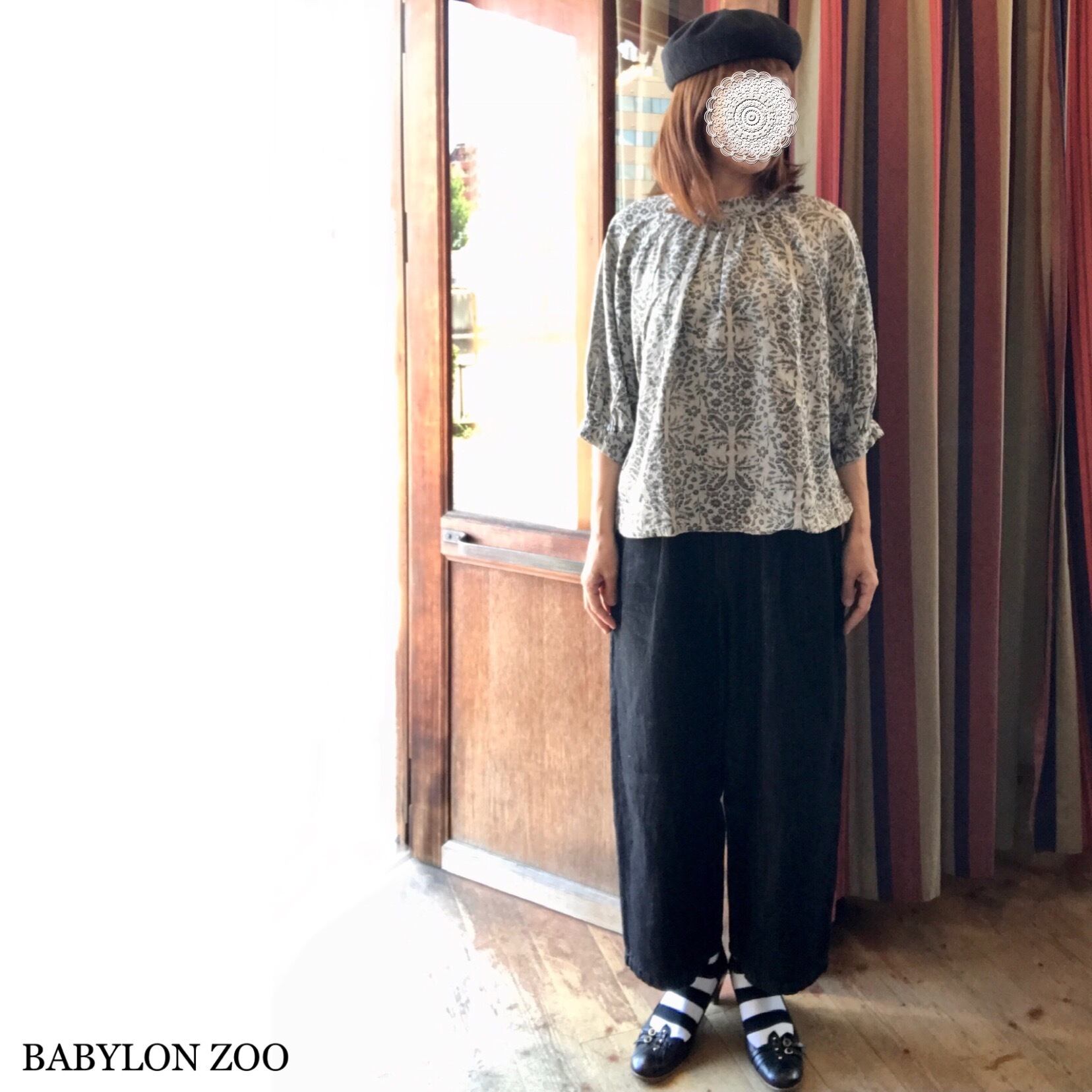 シックな色合いのジャガード素材を使用した秋にぴったりなブラウス。
