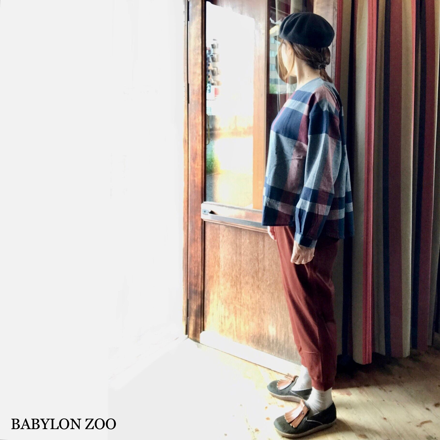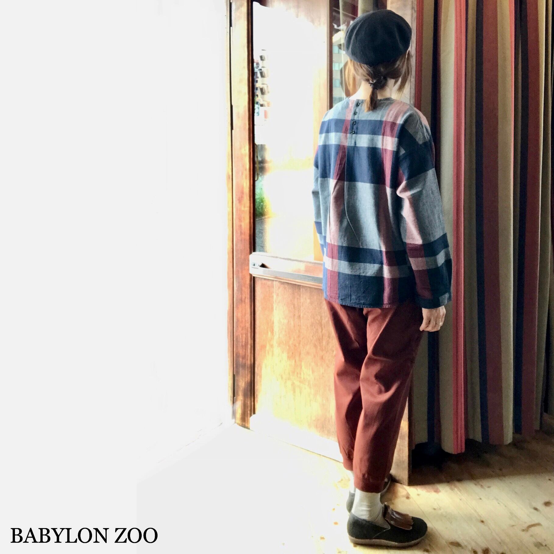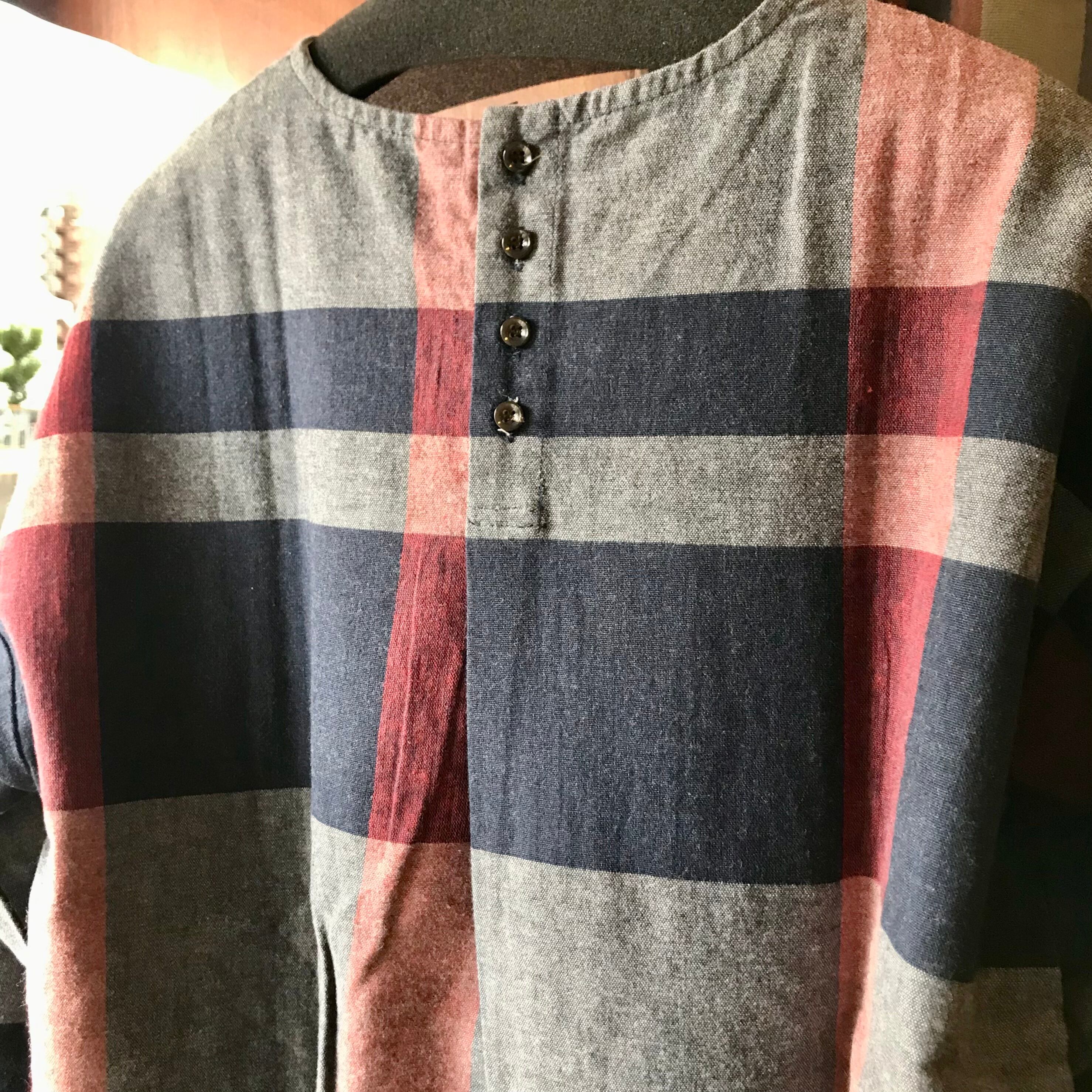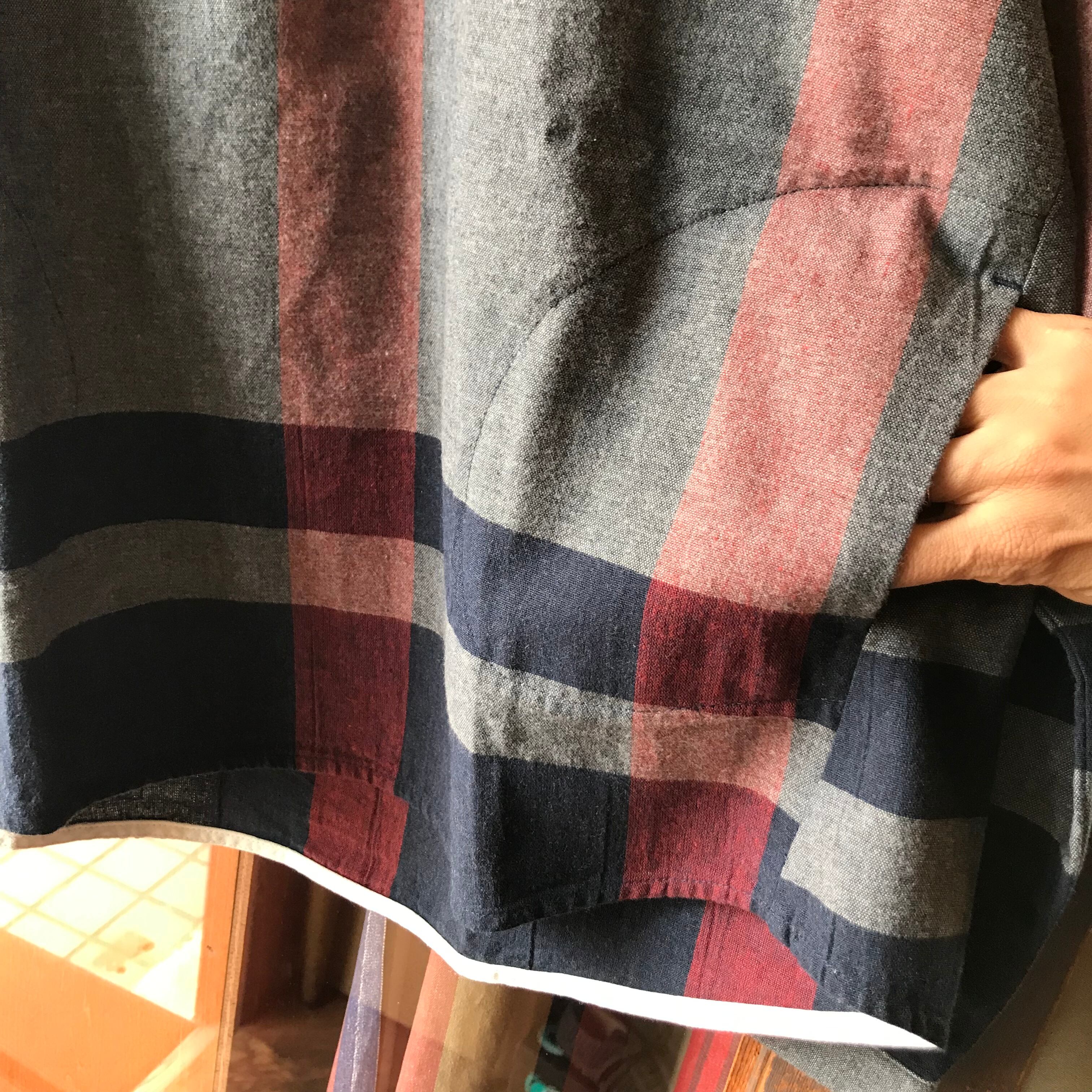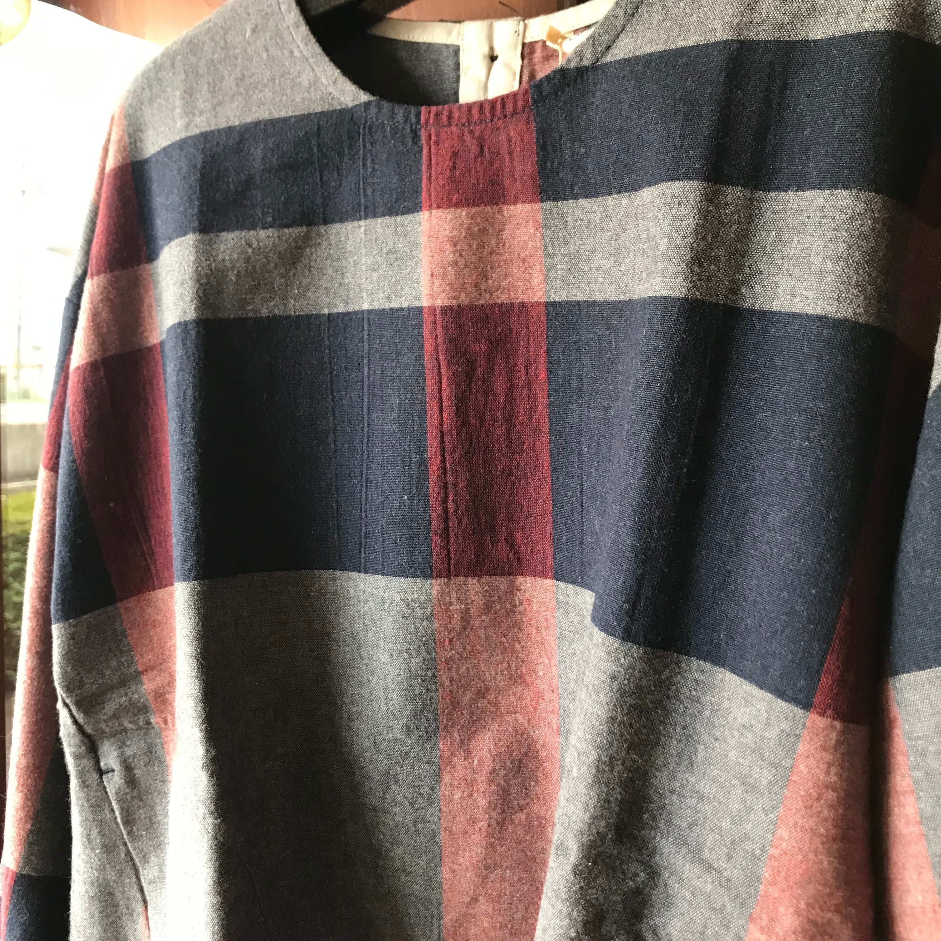 blue willowのコットンリネン大柄チェックプルオーバーブラウス