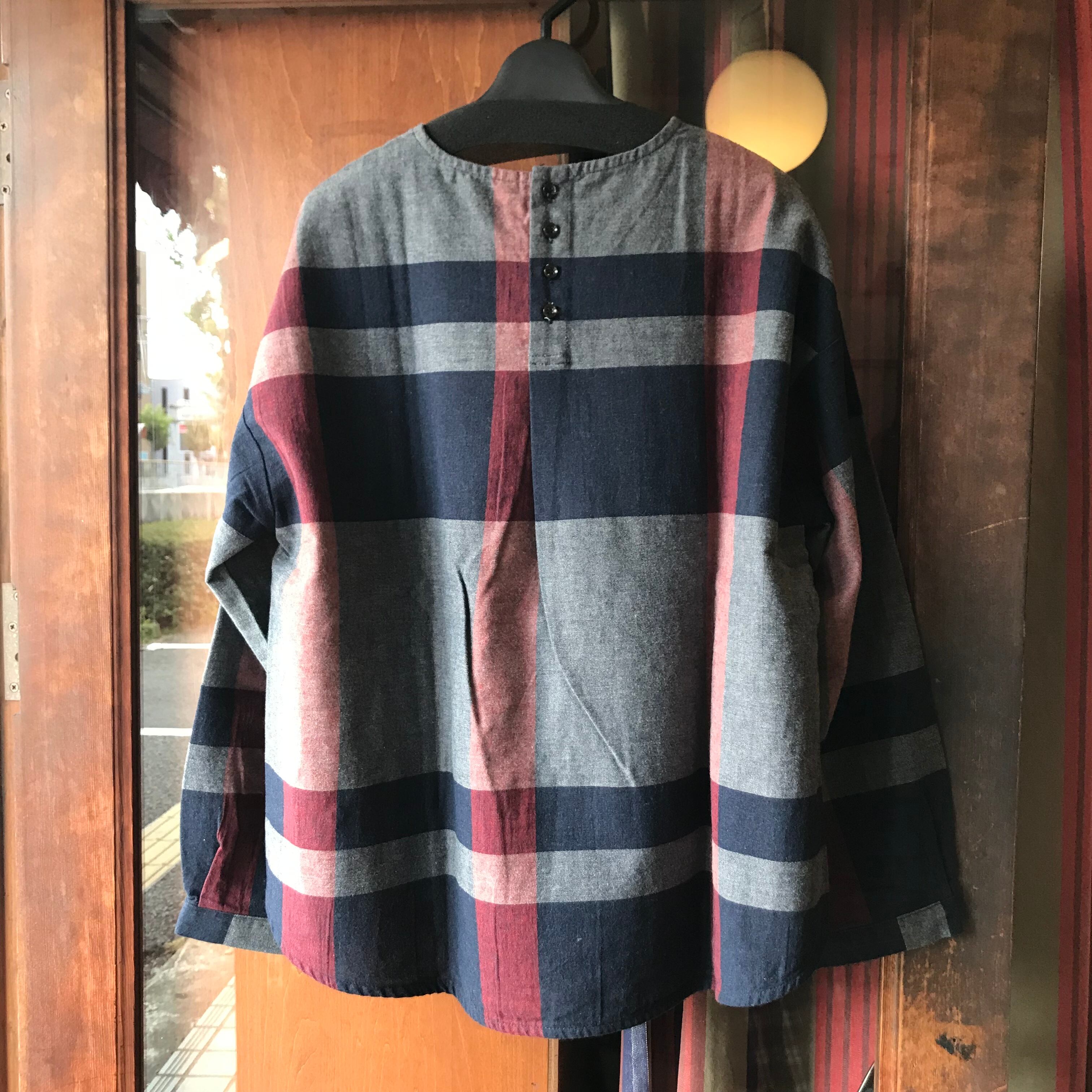 blue willowのコットンリネン大柄チェックプルオーバーブラウスです。