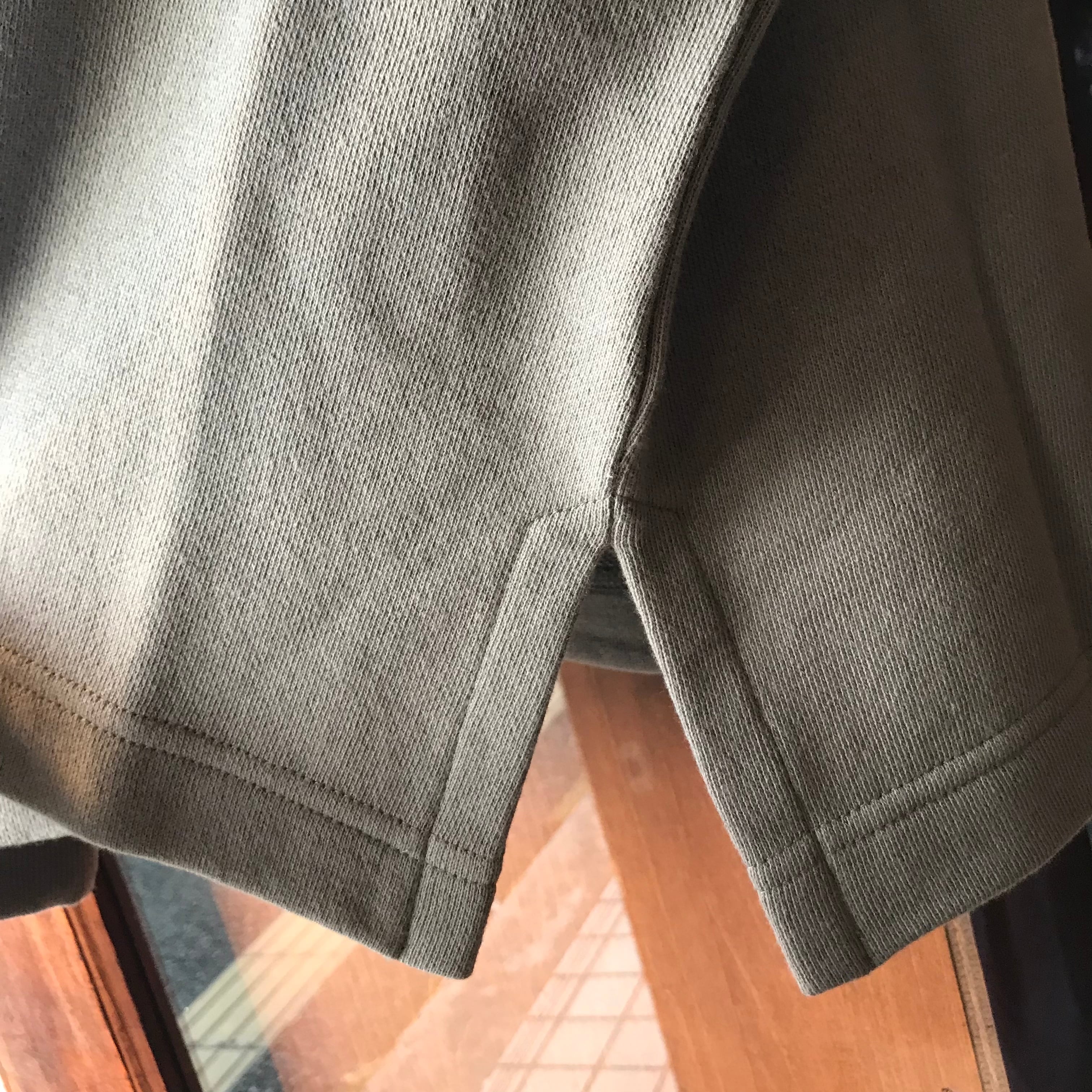 ゆったり身幅、裾はリブではないので締めつけ感のない楽な着心地です。