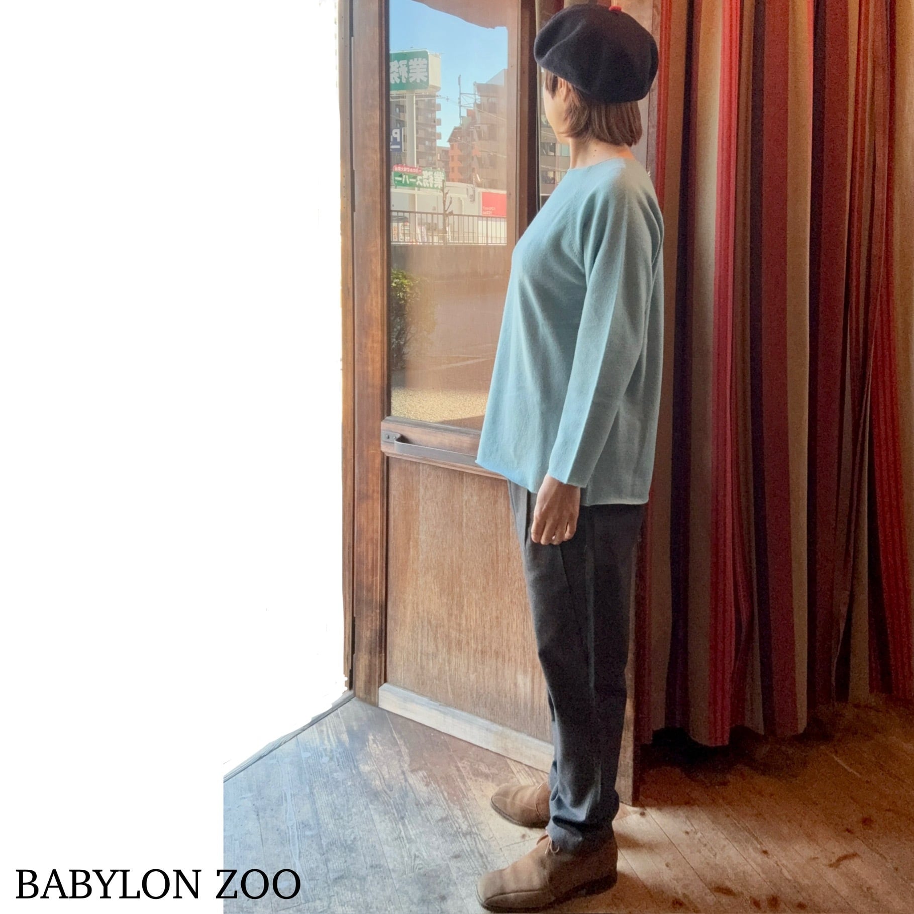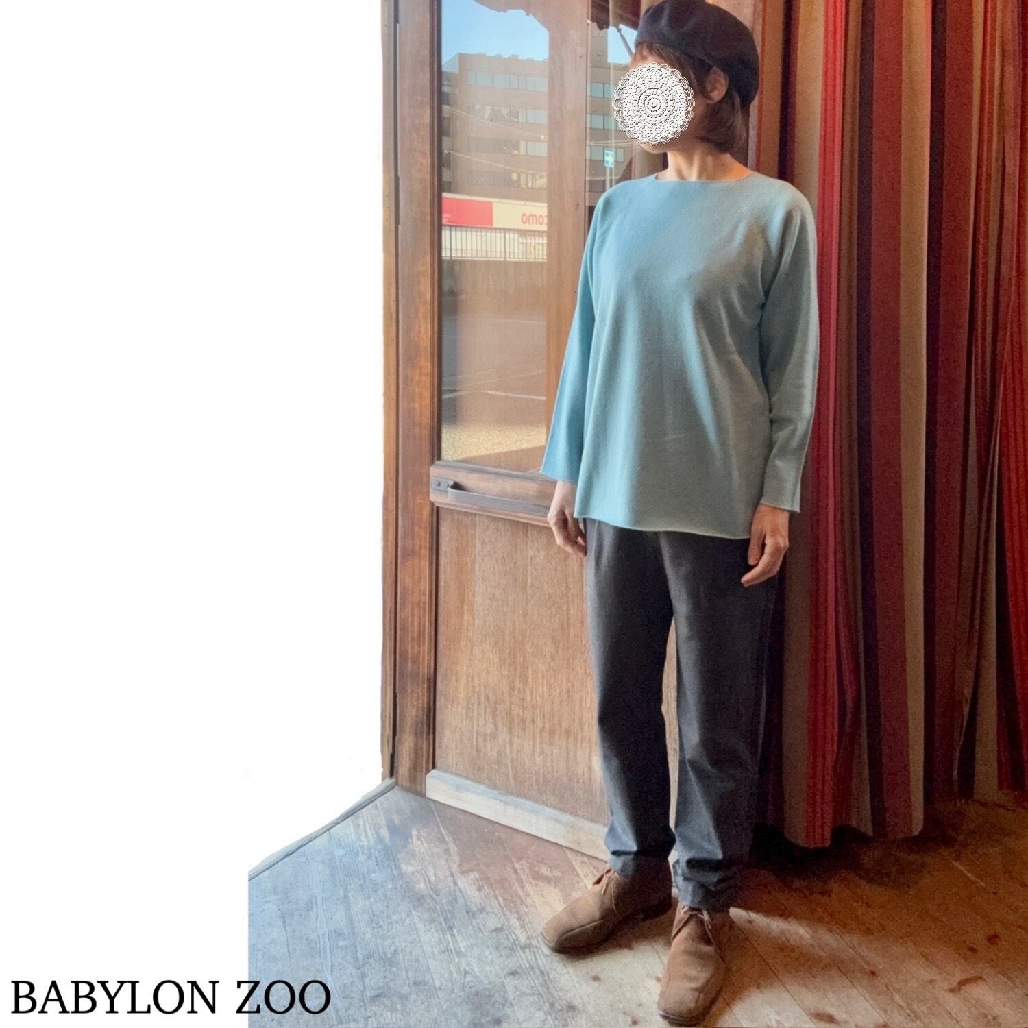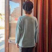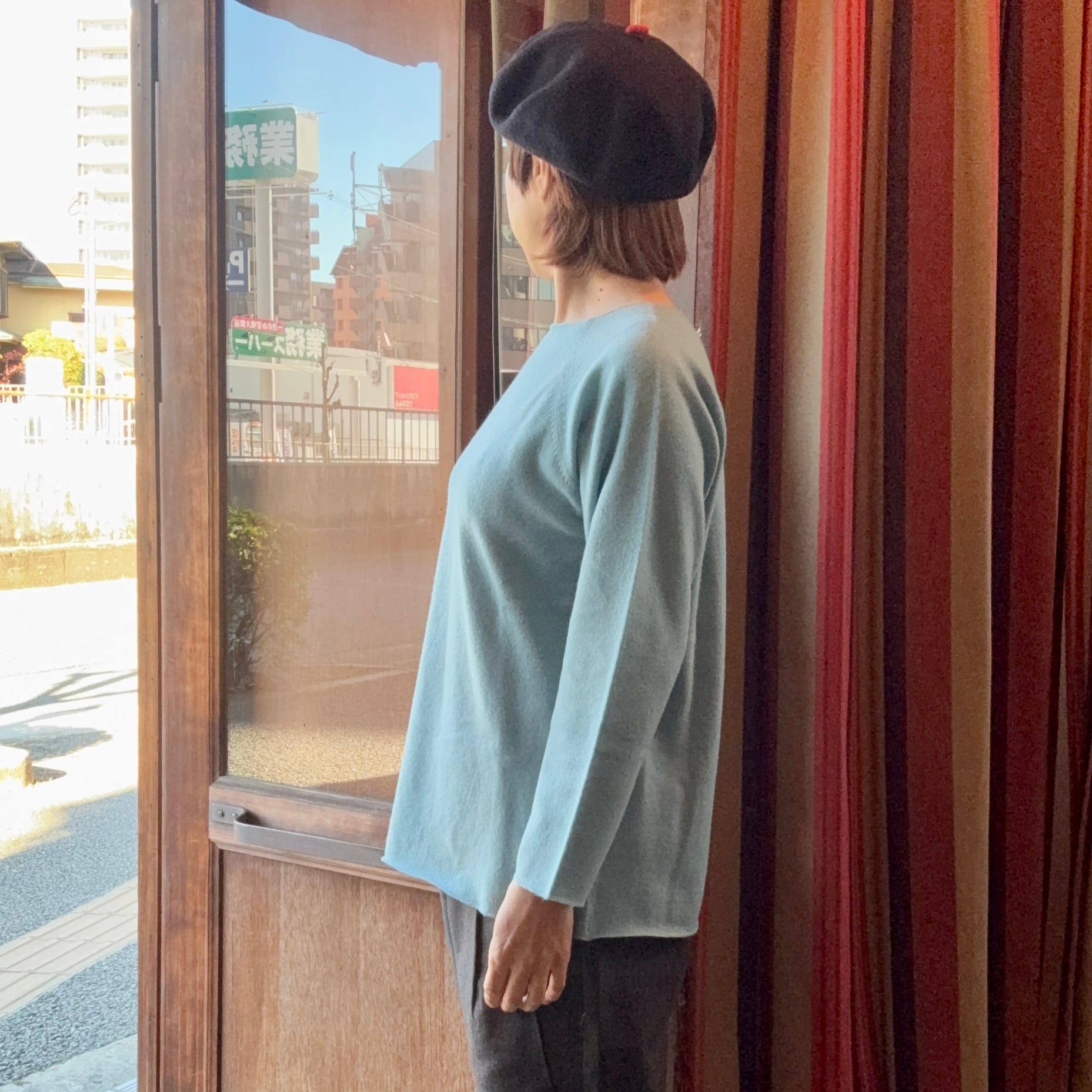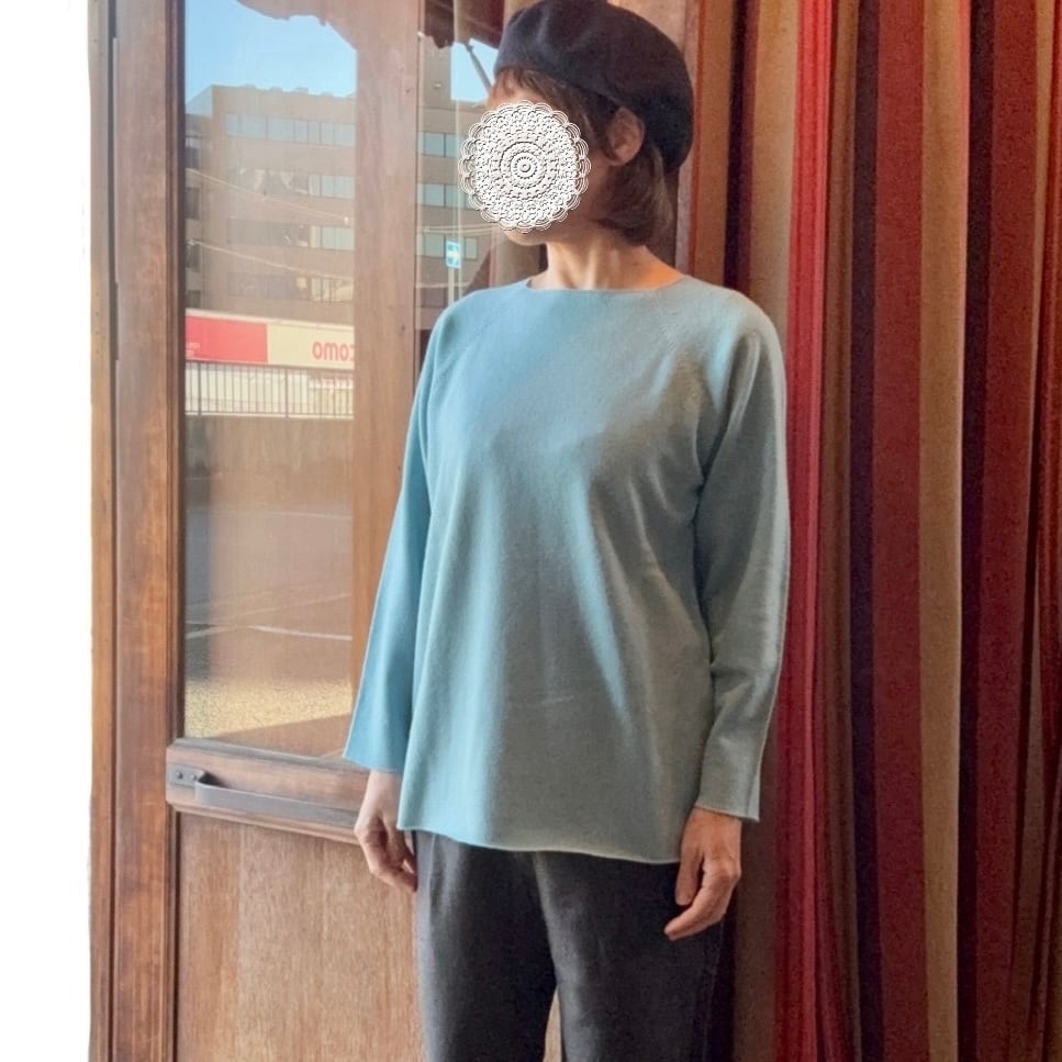 ラグランスリーブ、ゆったり身幅に少し長めの丈。