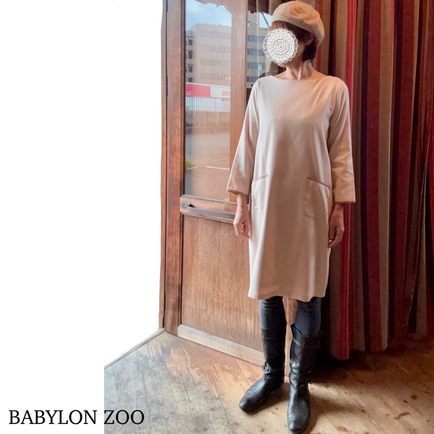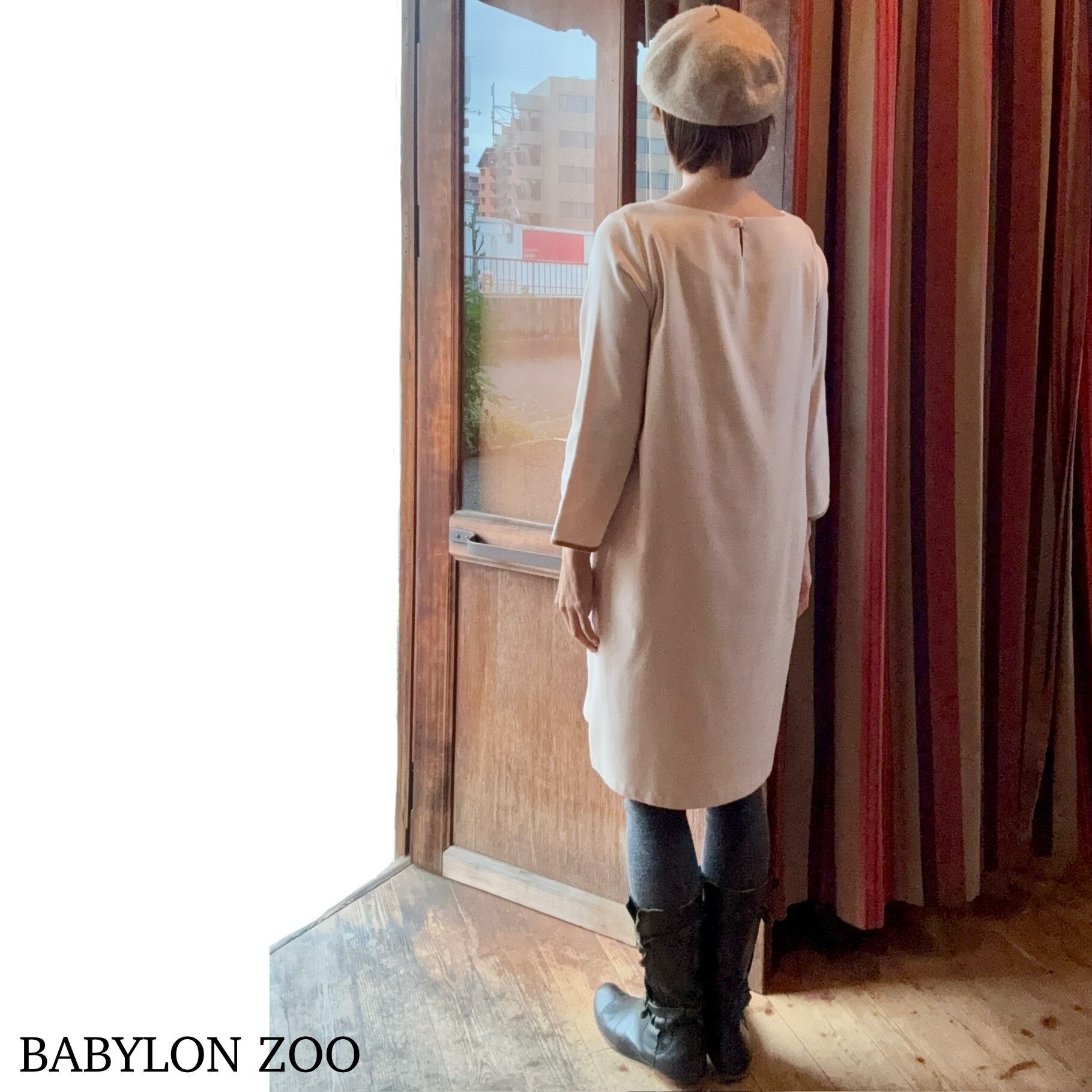 inaのボートネックコクーンワンピース。