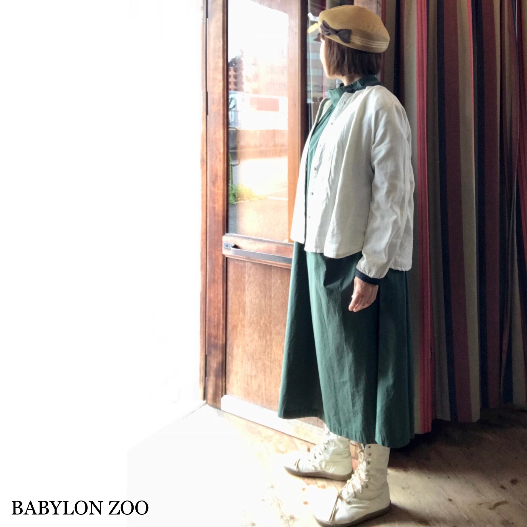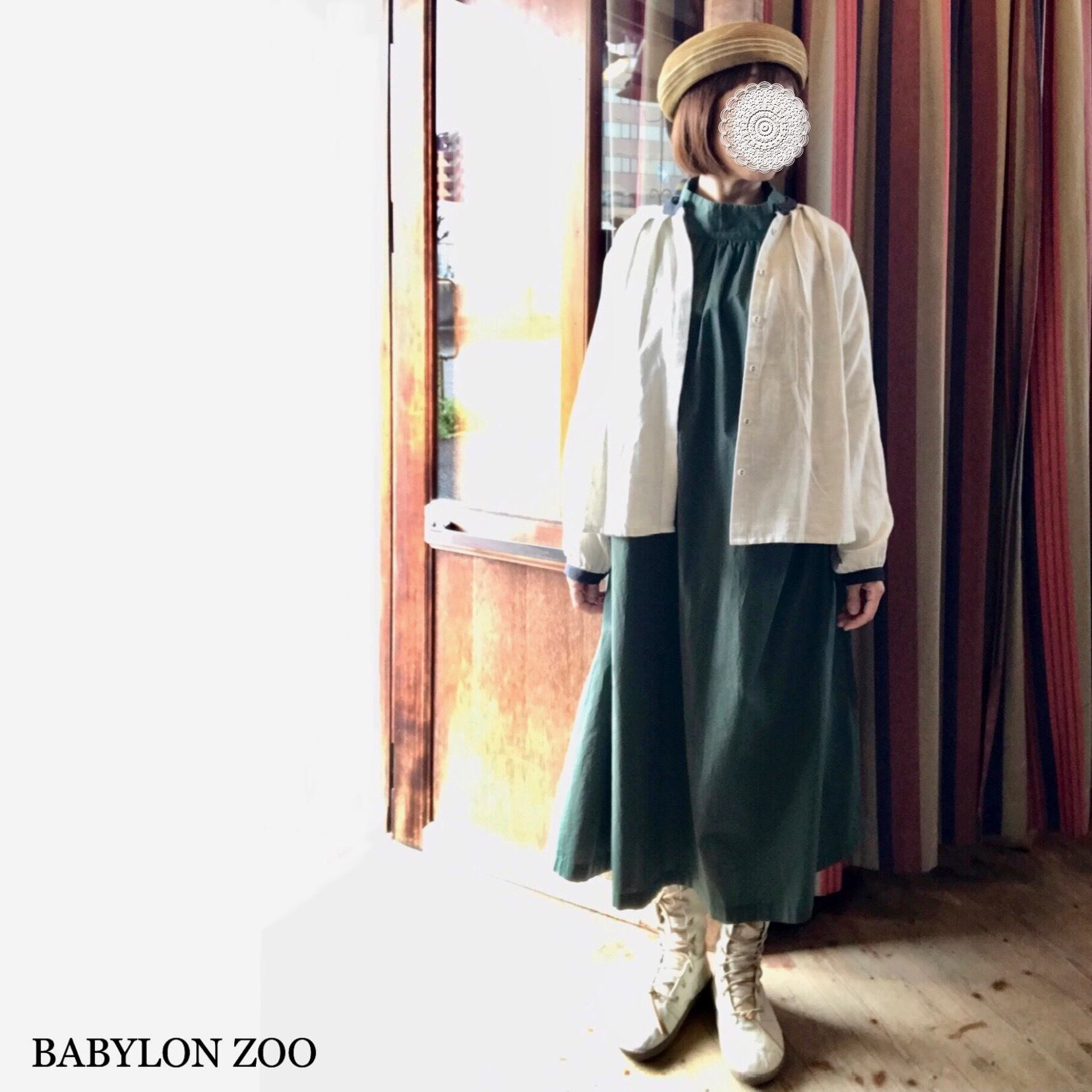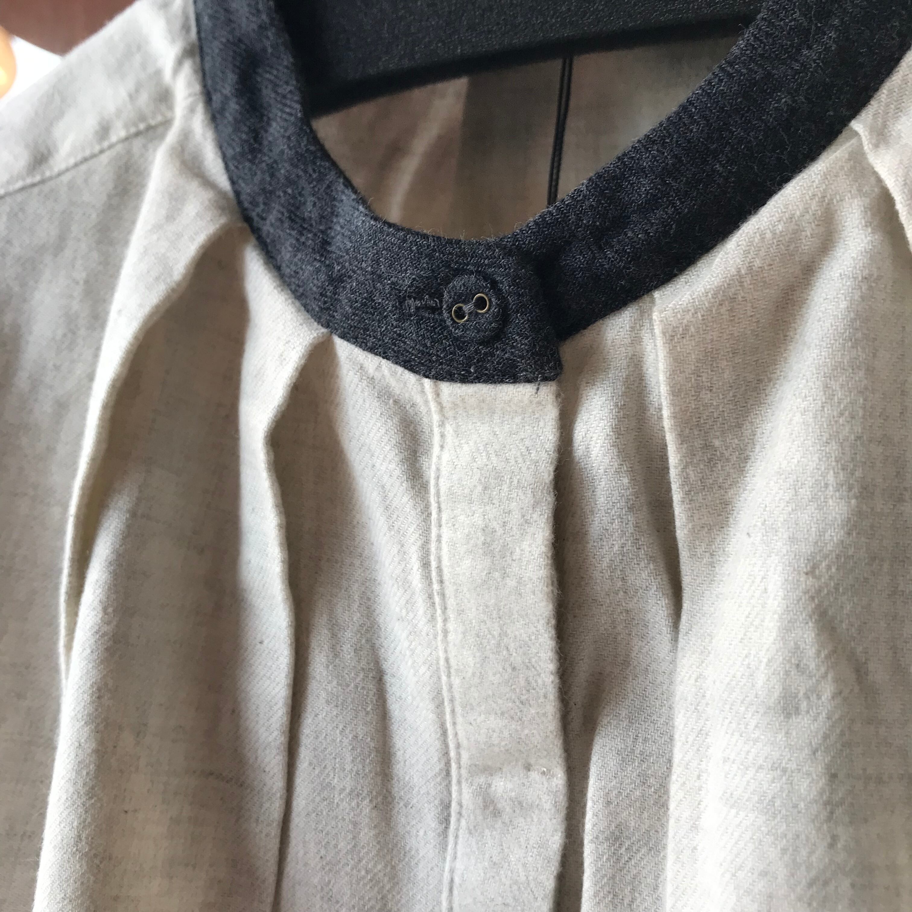 フロントの比翼仕立てと低めのスタンドカラーですっきりとした印象に仕上げました。