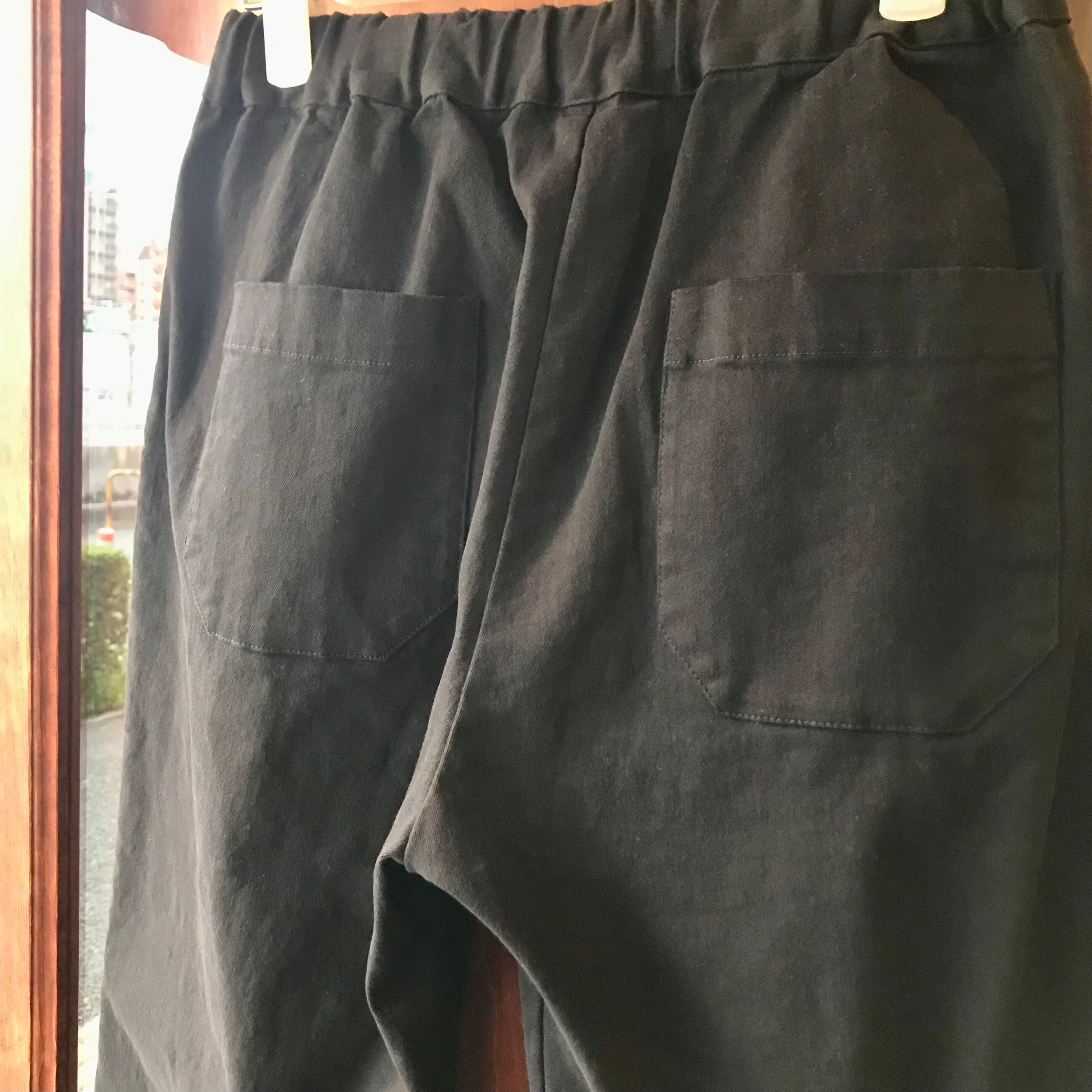 ヒップと太もも周りはゆったりとしていて、裾にかけて細くなるテーパードシルエット。