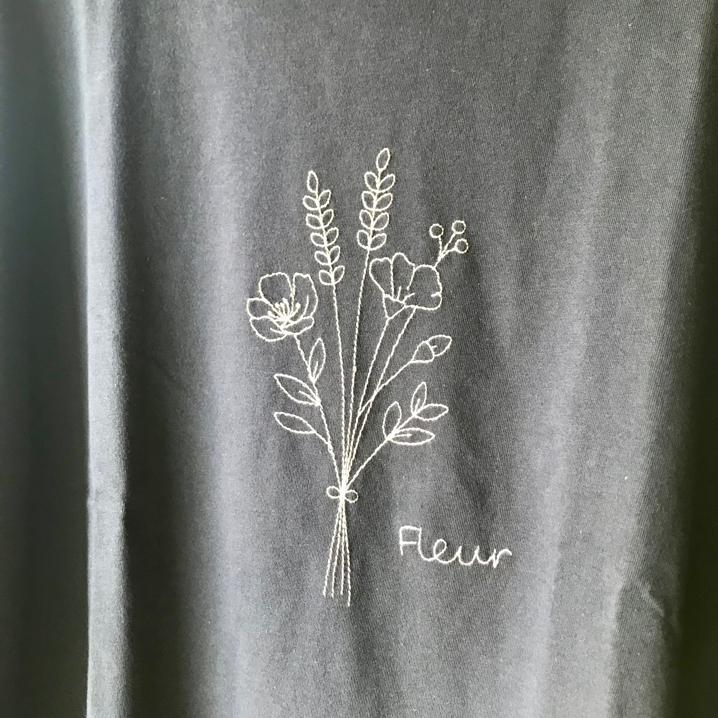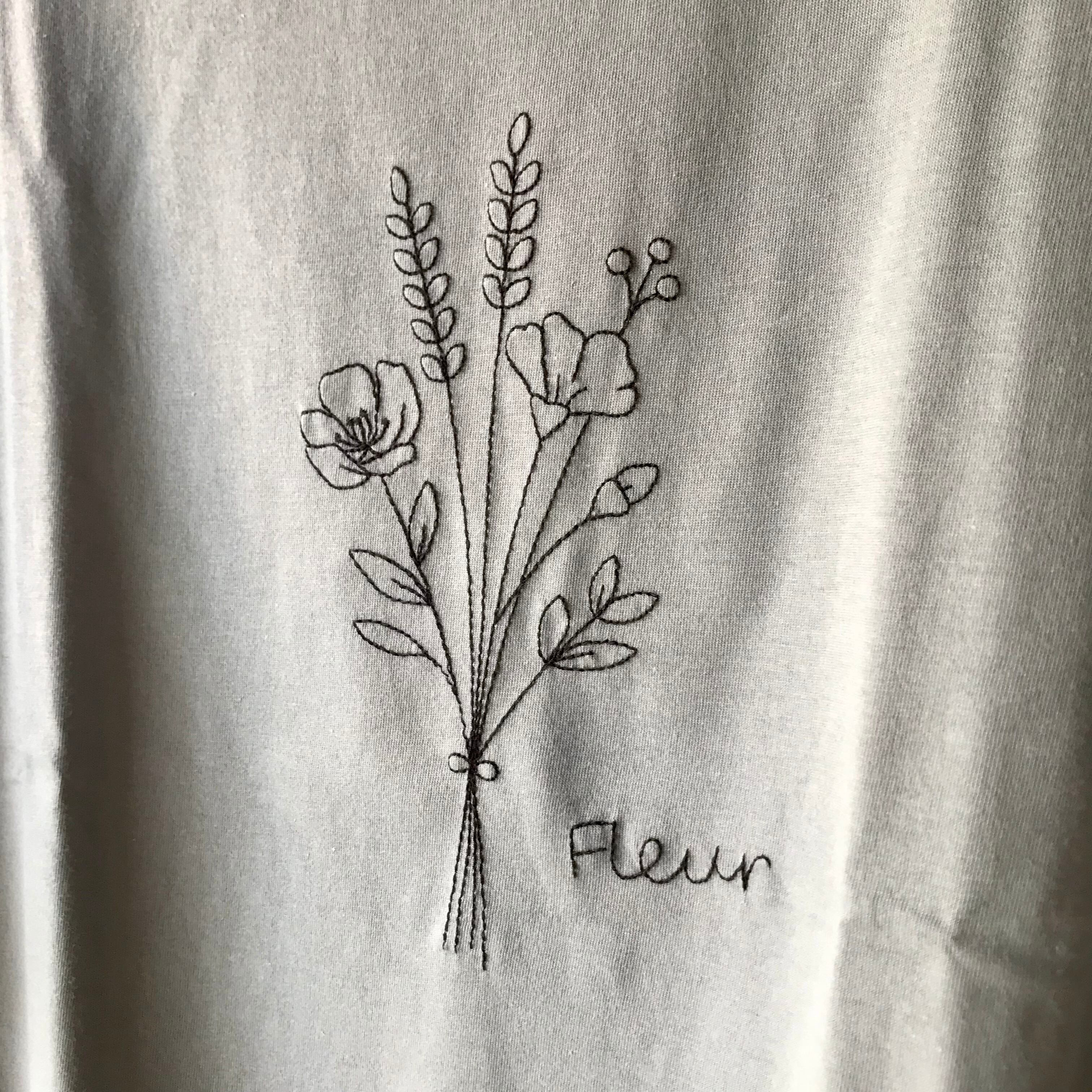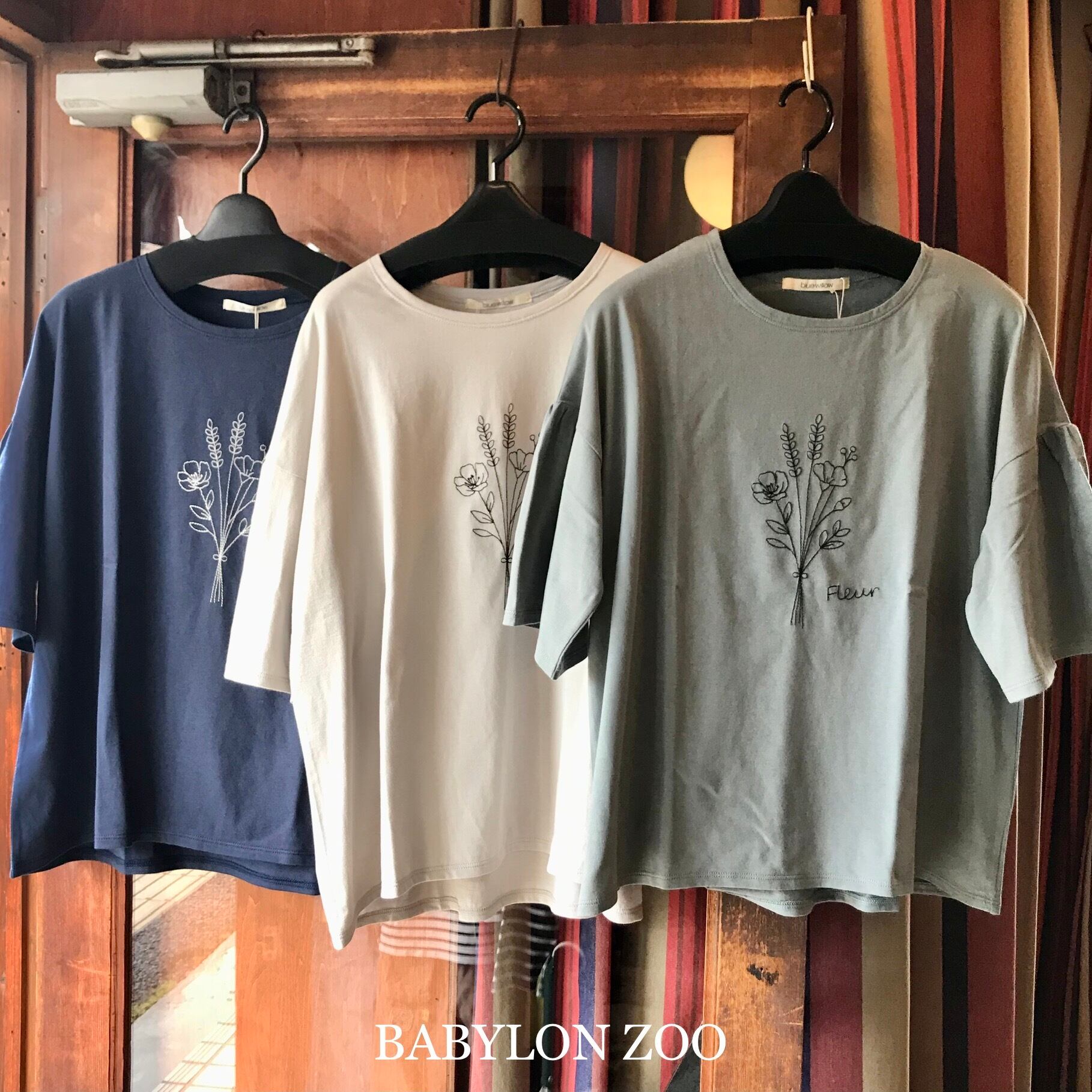 センターにフラワー刺繍が入った可愛いTシャツ。