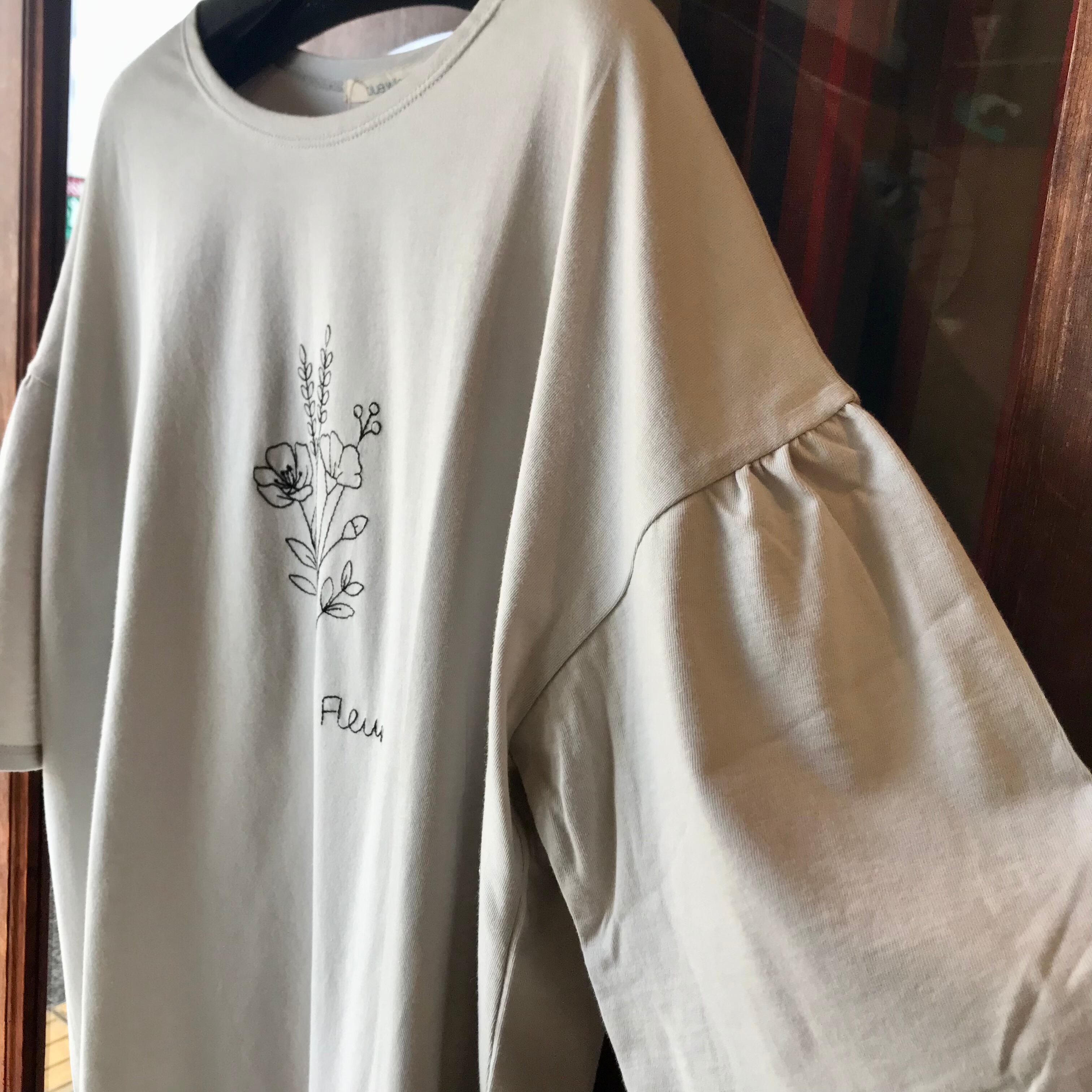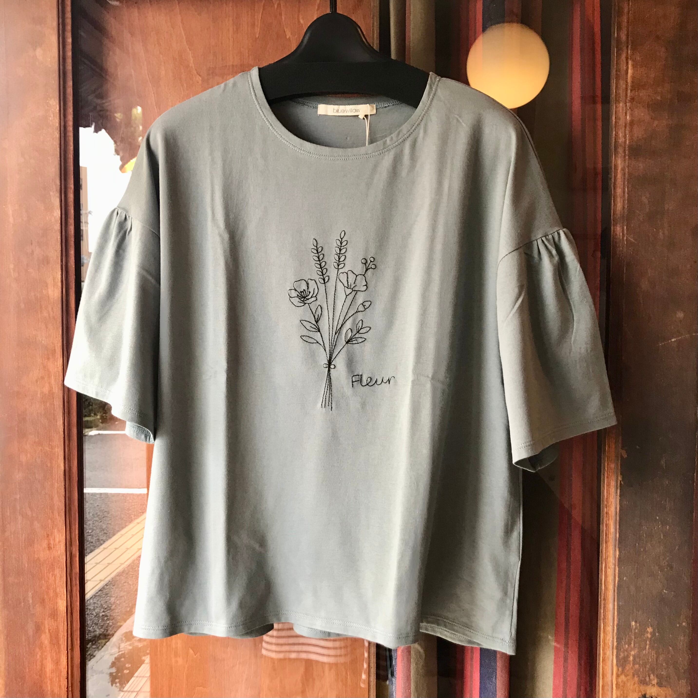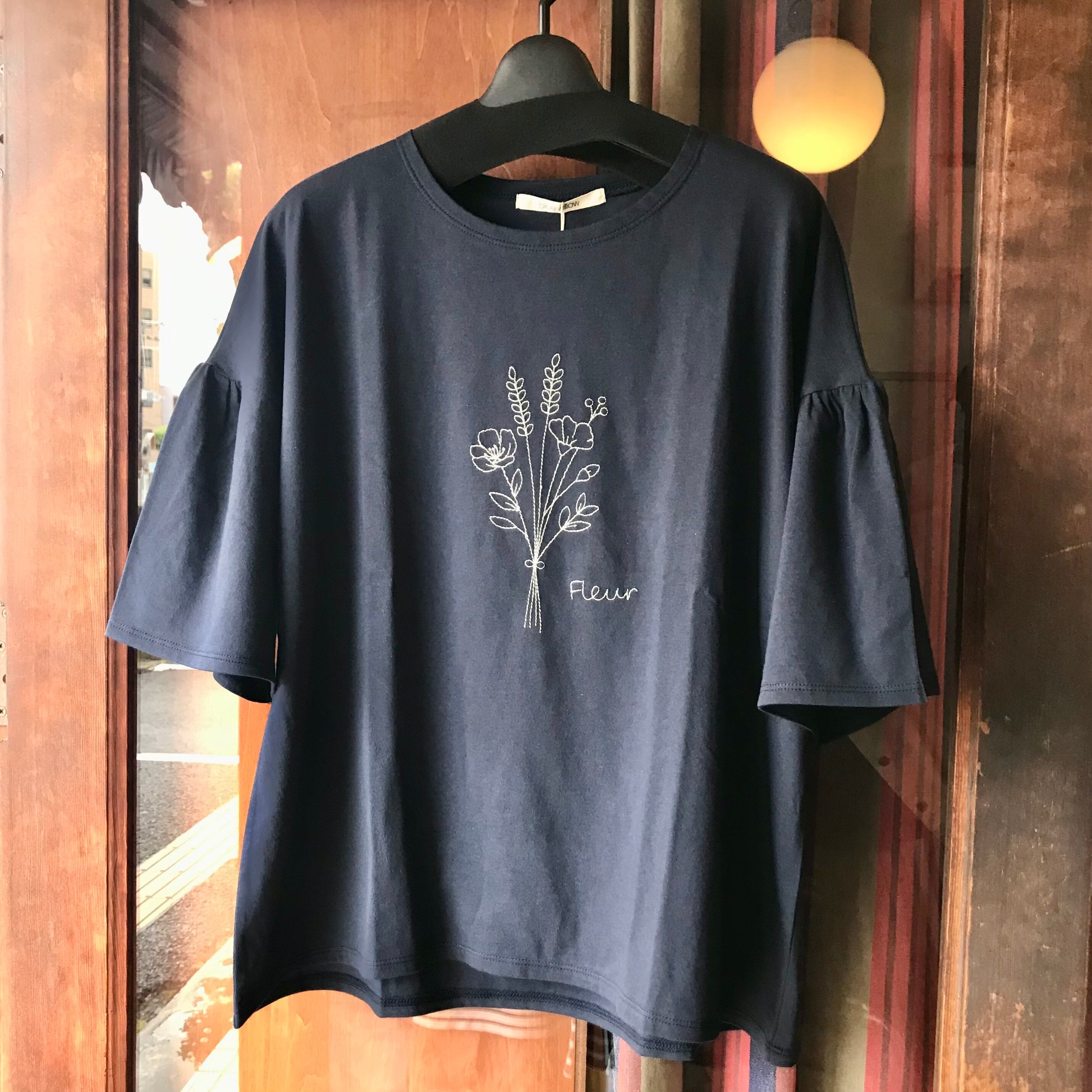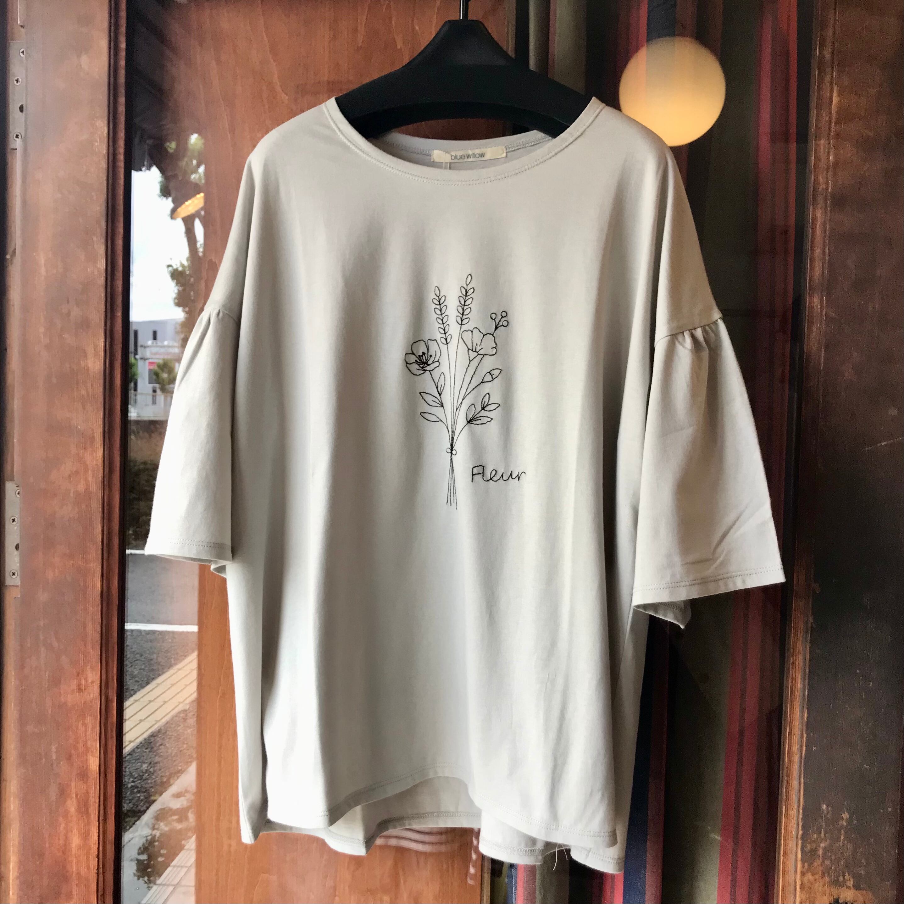 blue willowのフラワー刺繍ギャザースリーブTシャツです。