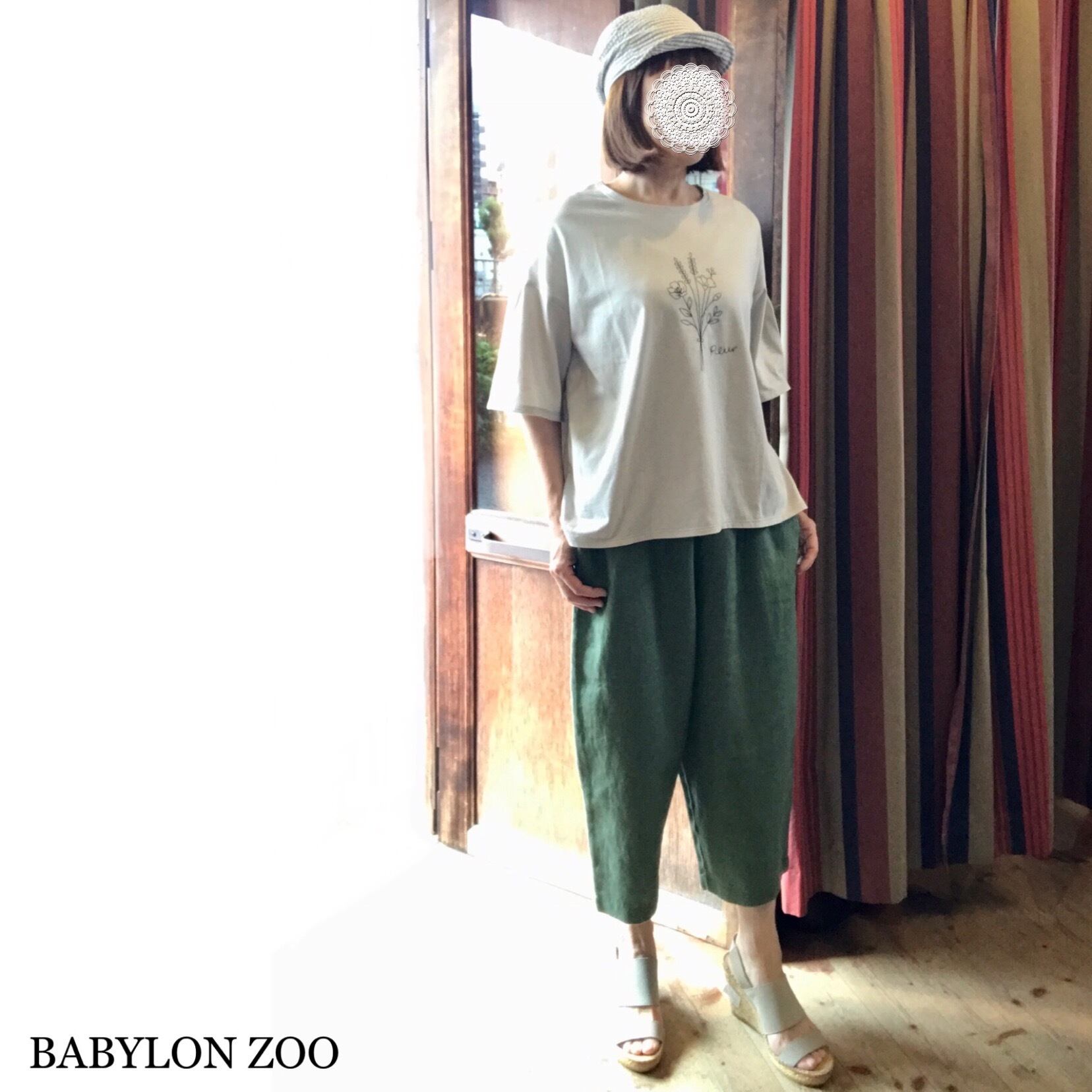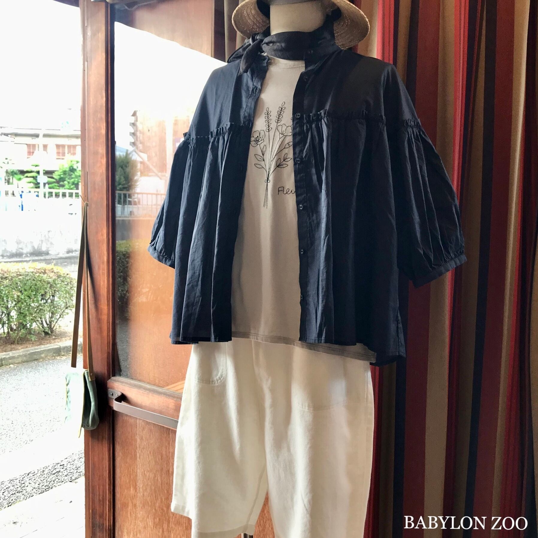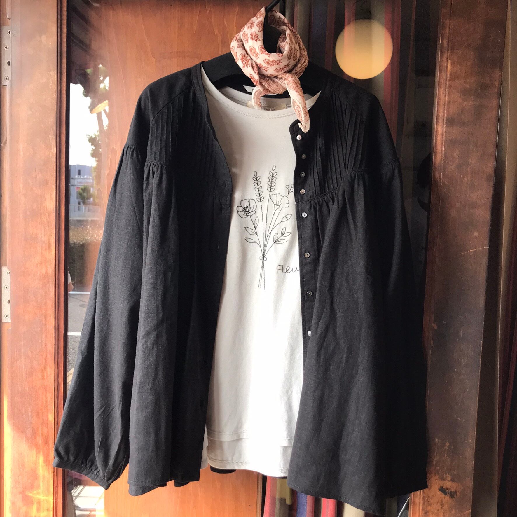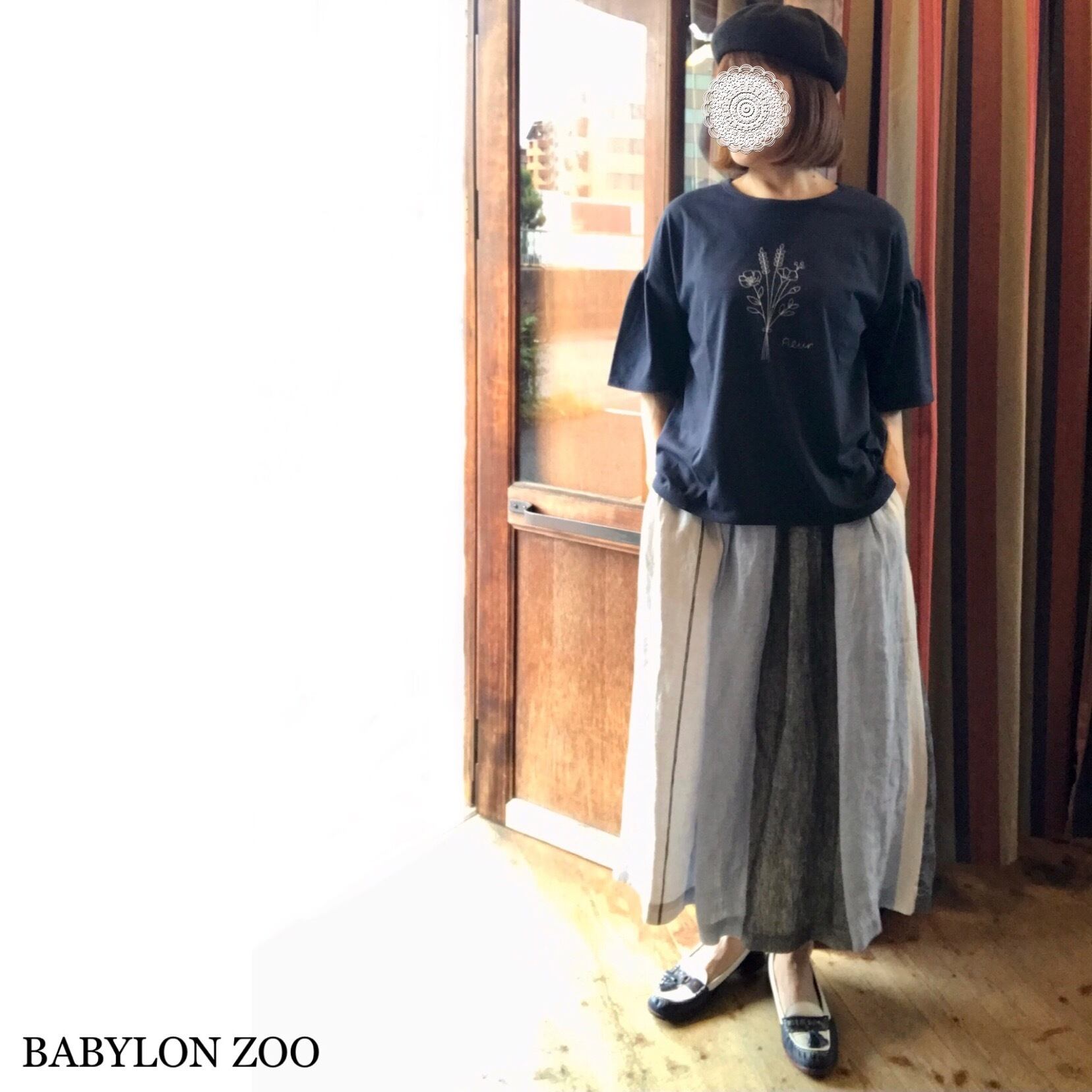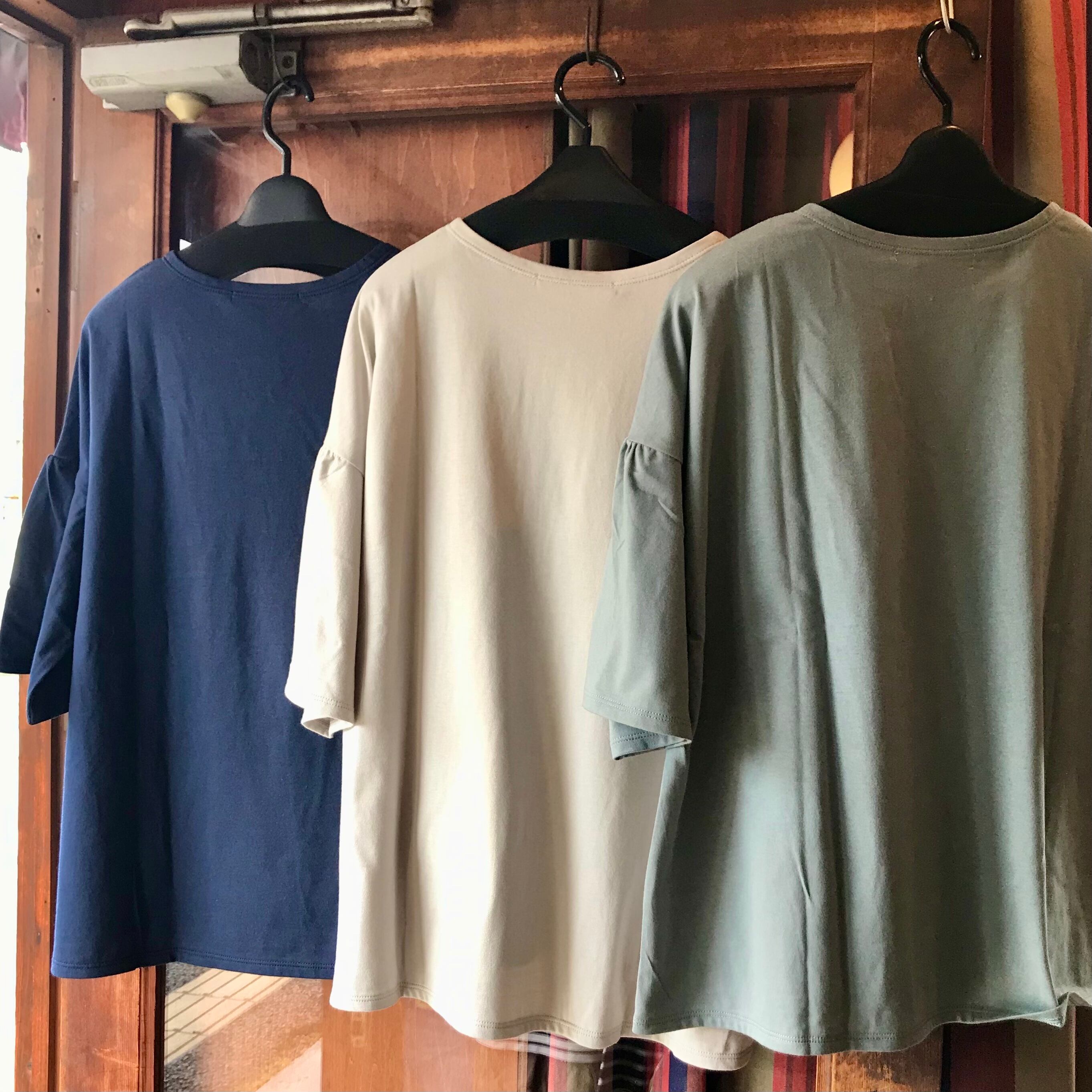 blue willowのフラワー刺繍ギャザースリーブTシャツです。