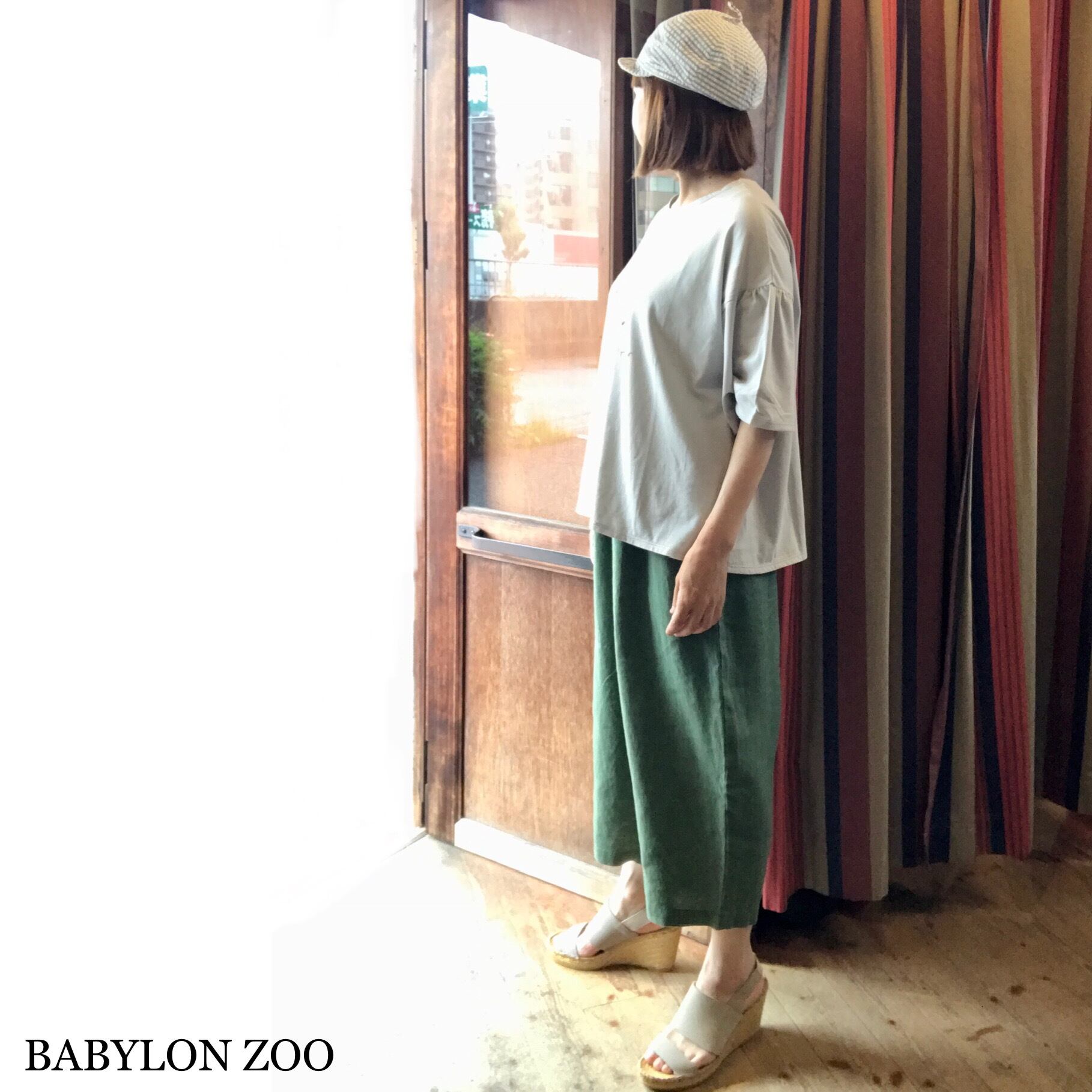 袖はドロップショルダーで袖山にギャザーが入っていて少しだけふんわりしたデザイン。