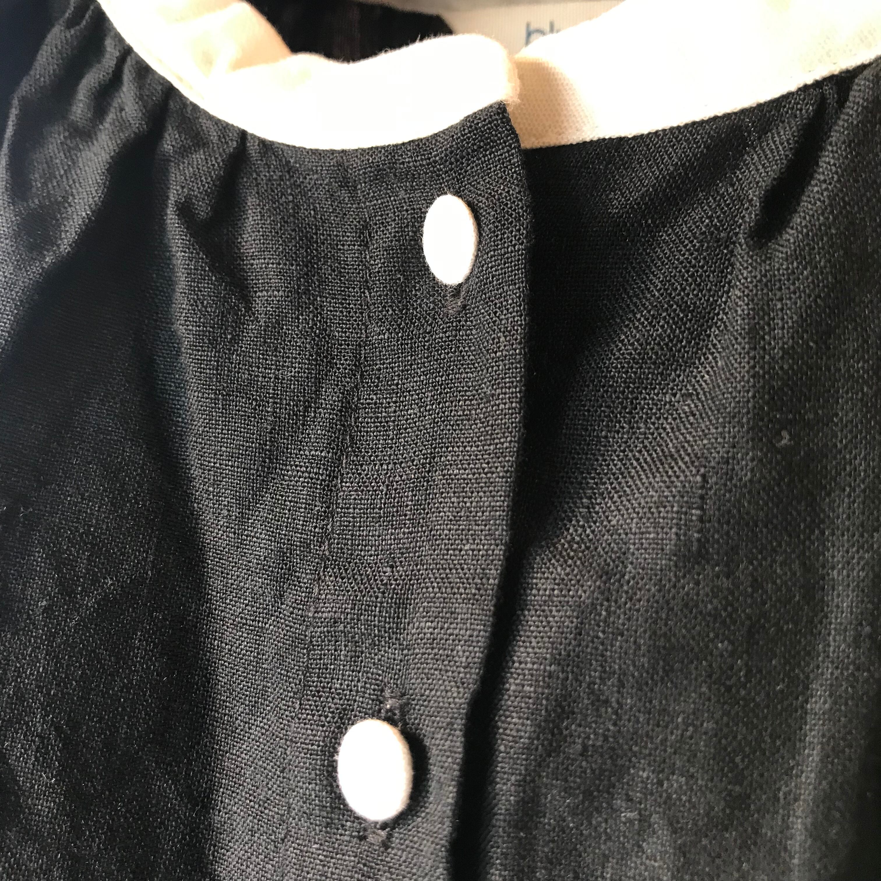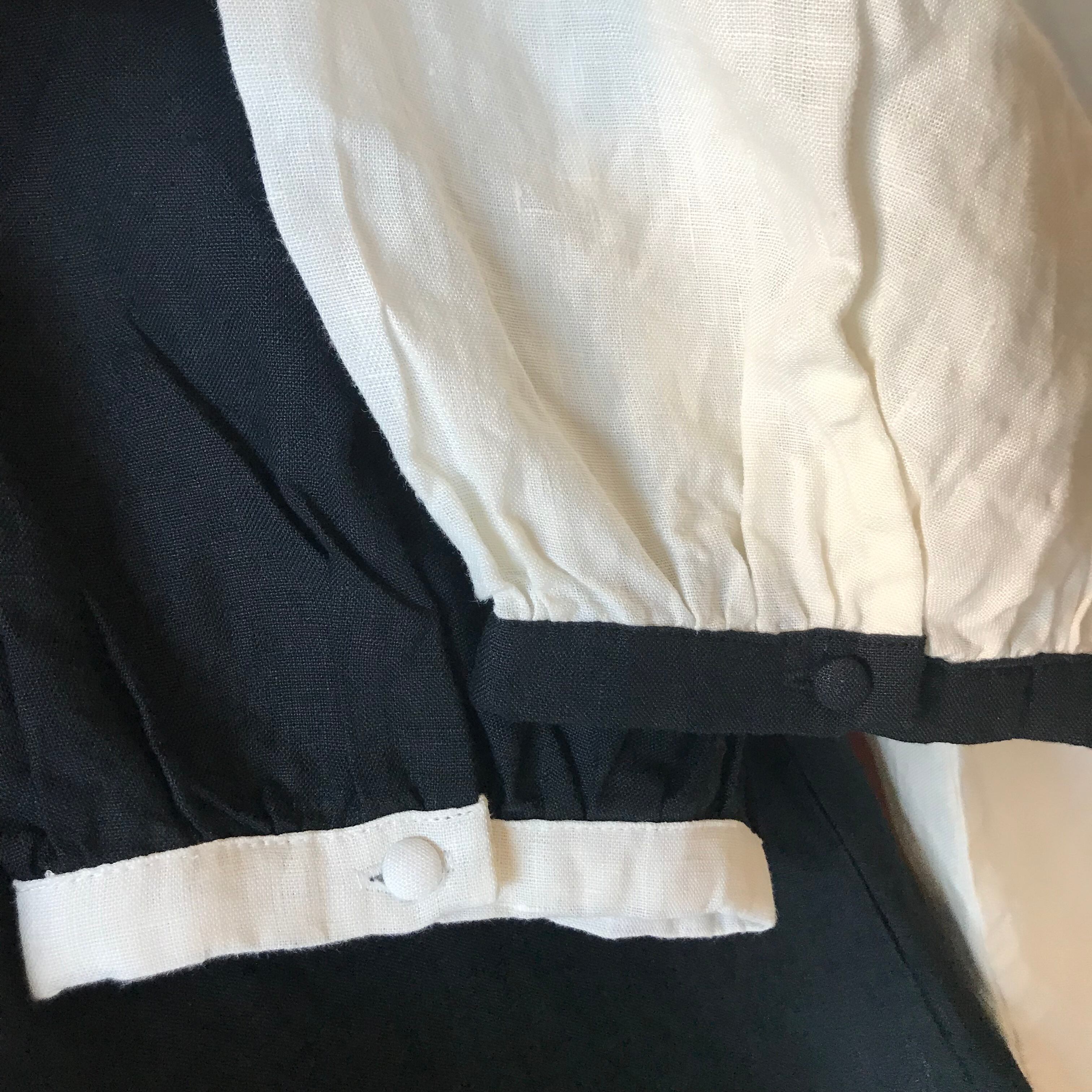 衿と袖口、ボタンをホワイトにはブラック、ブラックにはホワイトの生地を使い配色にしています。