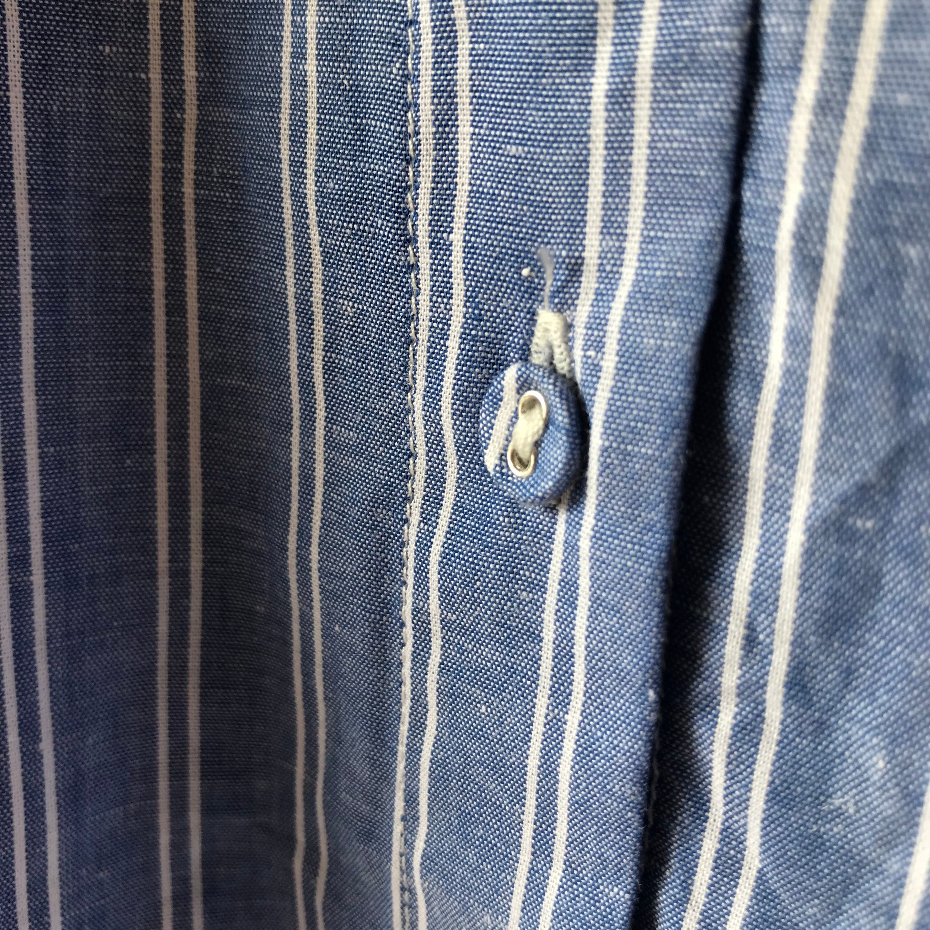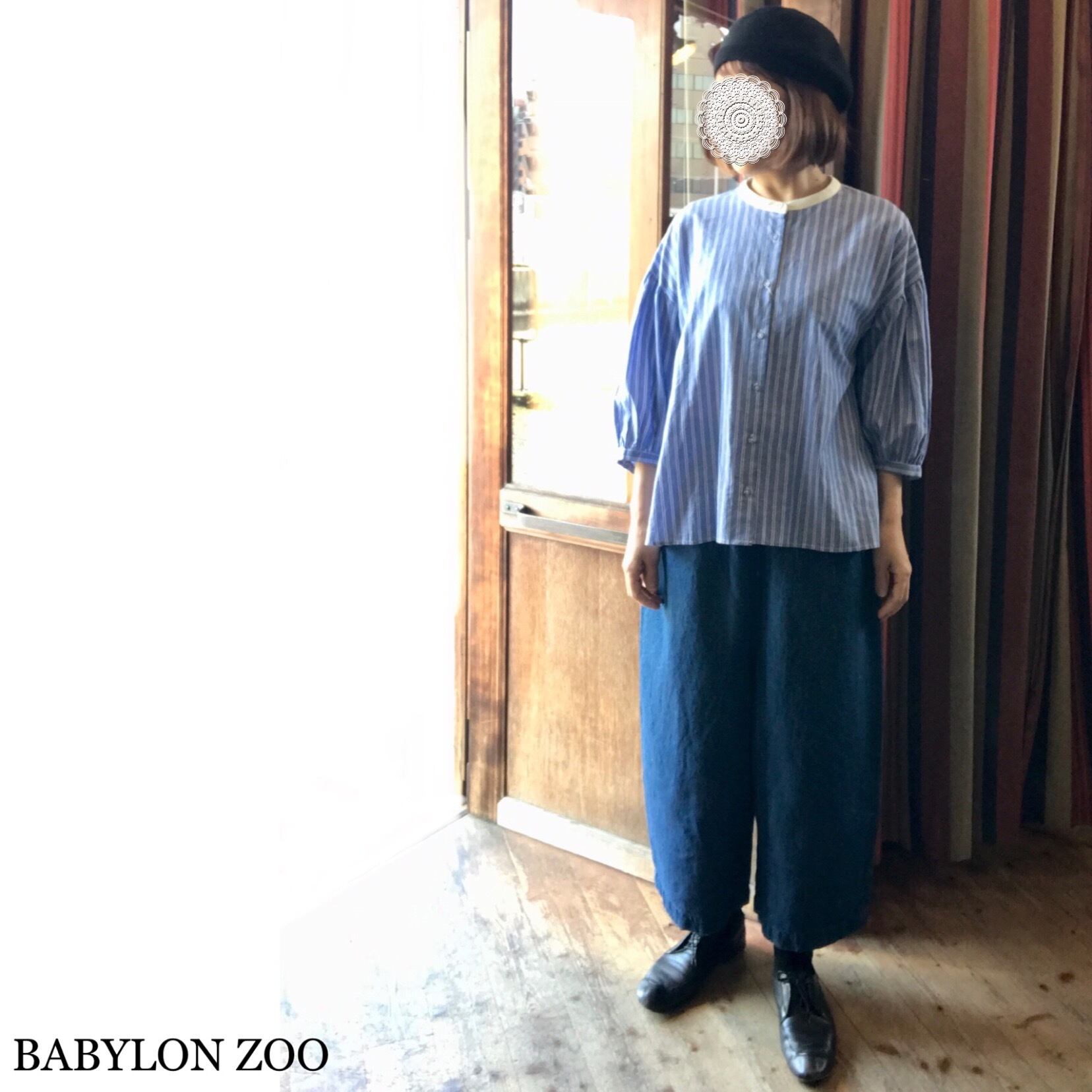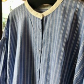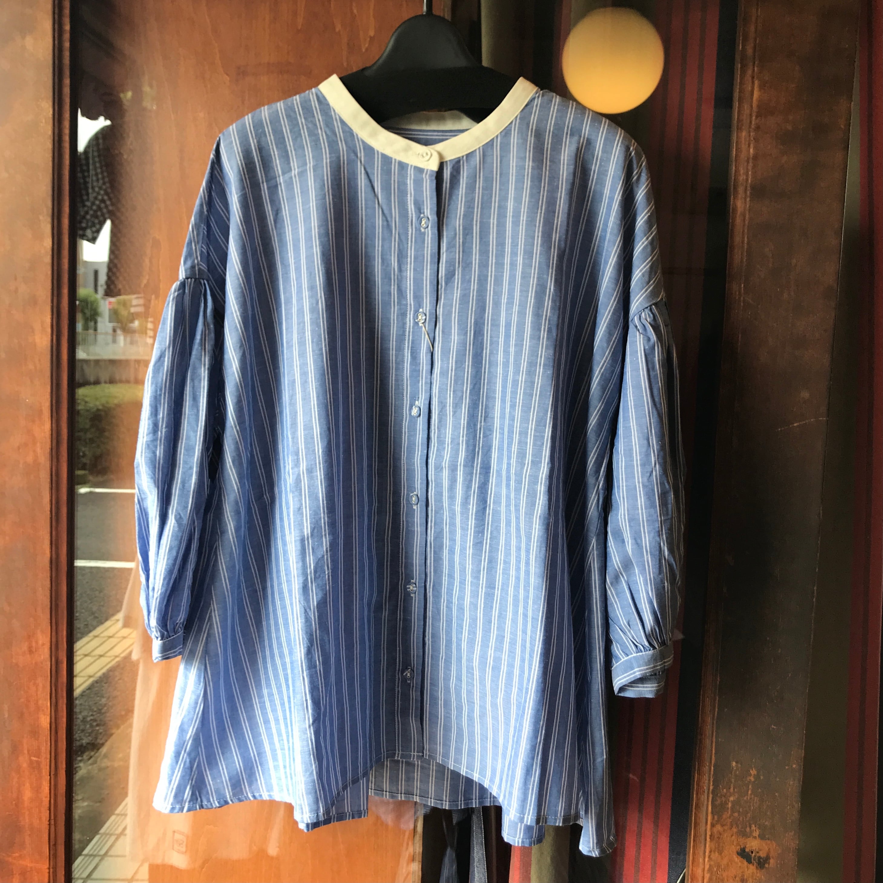 ブルーストライプにオフホワイトのクレリックカラーがポイントです。