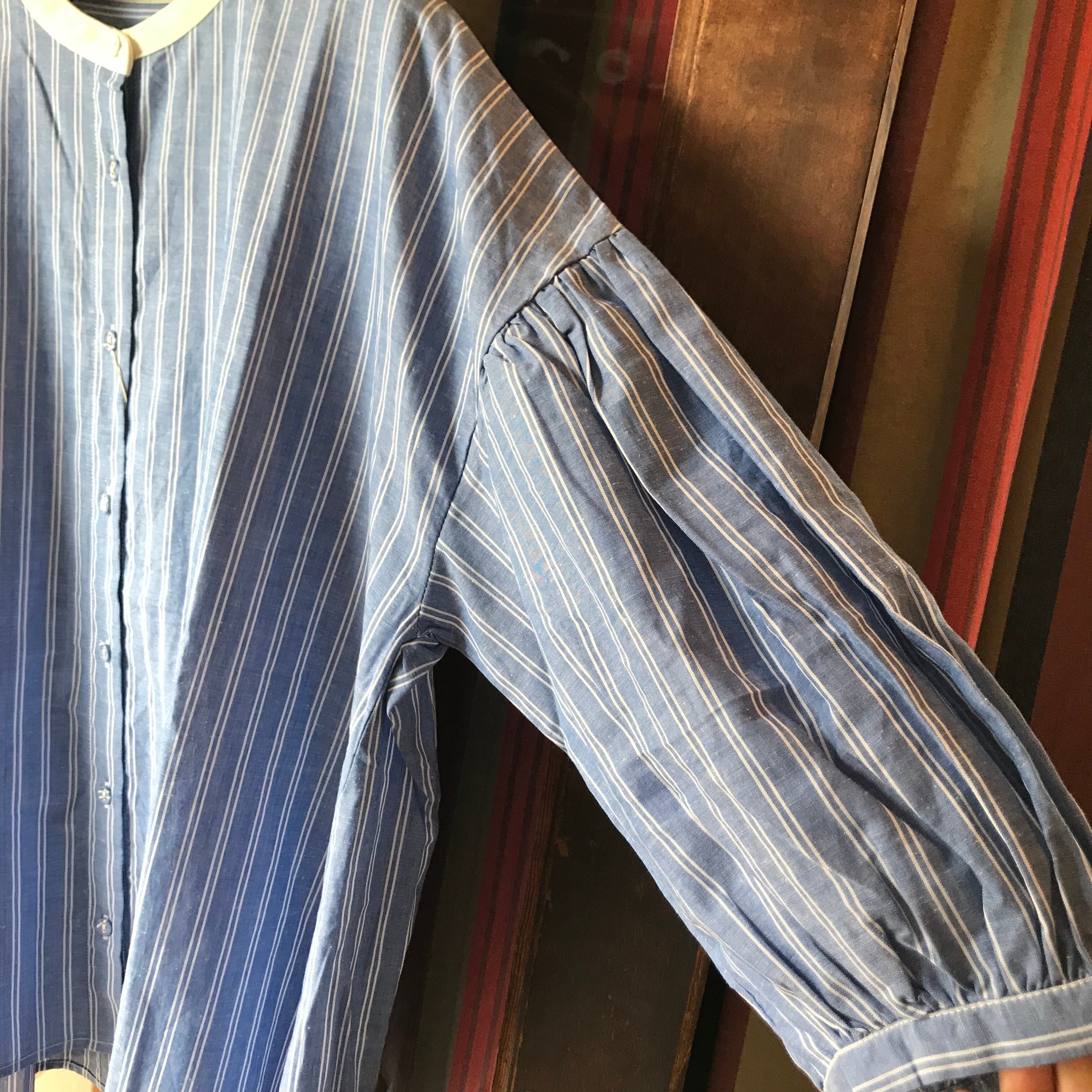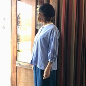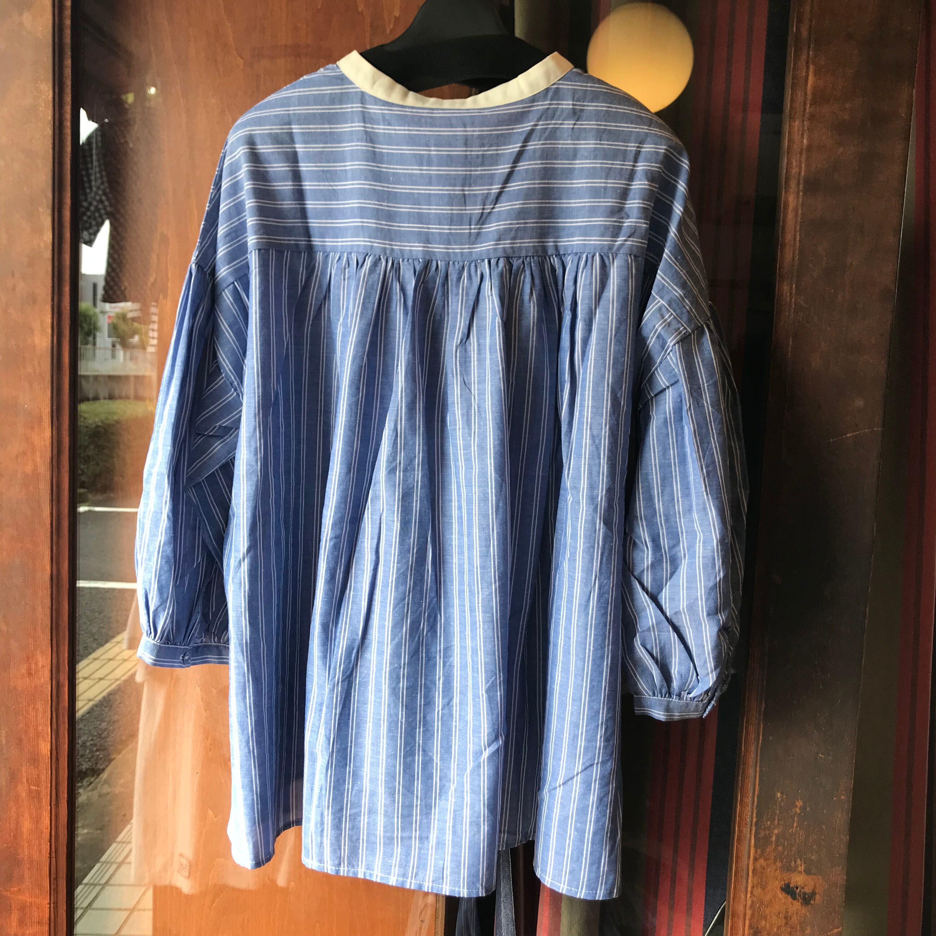 blue willowのコットンリネンクレリックカラーギャザーブラウス