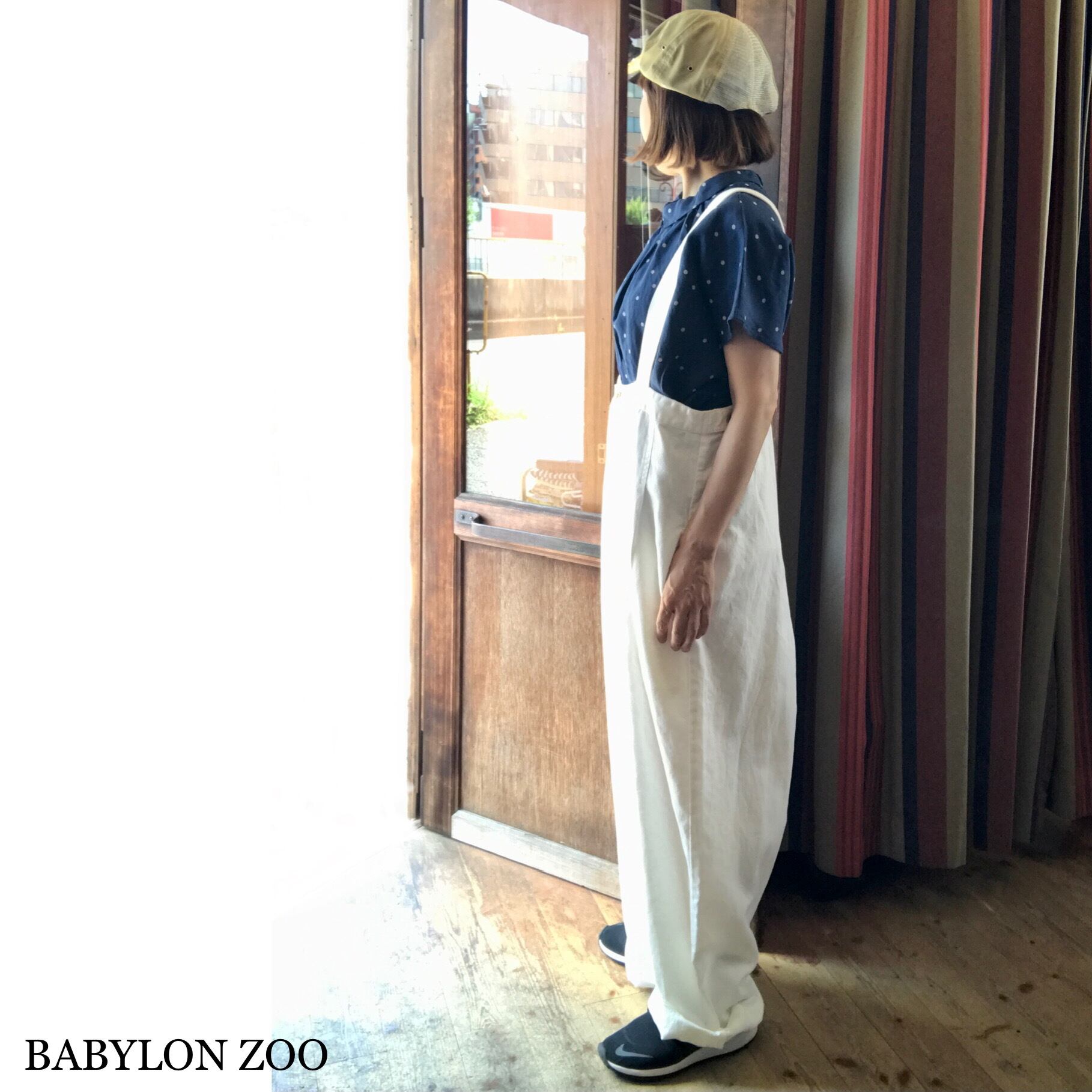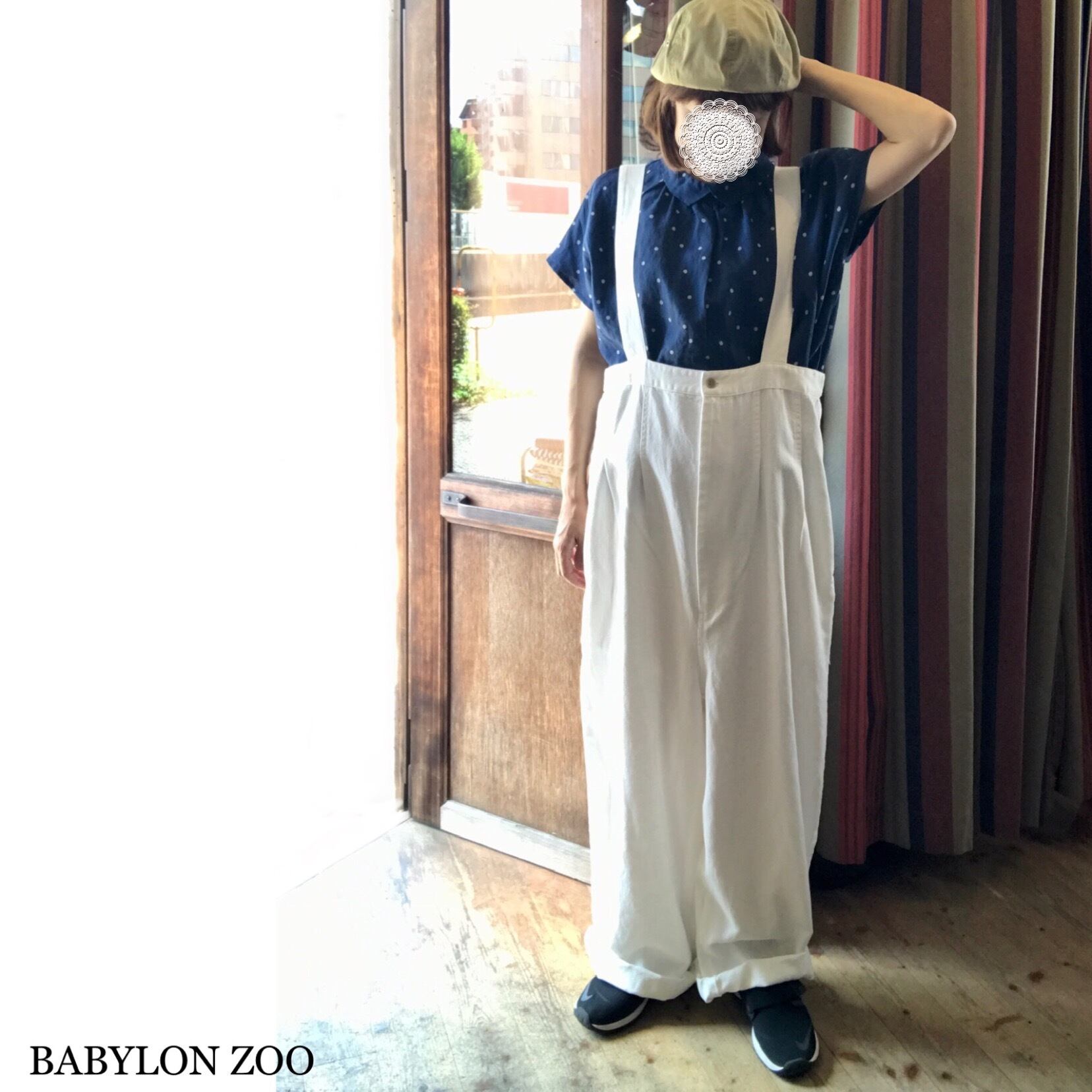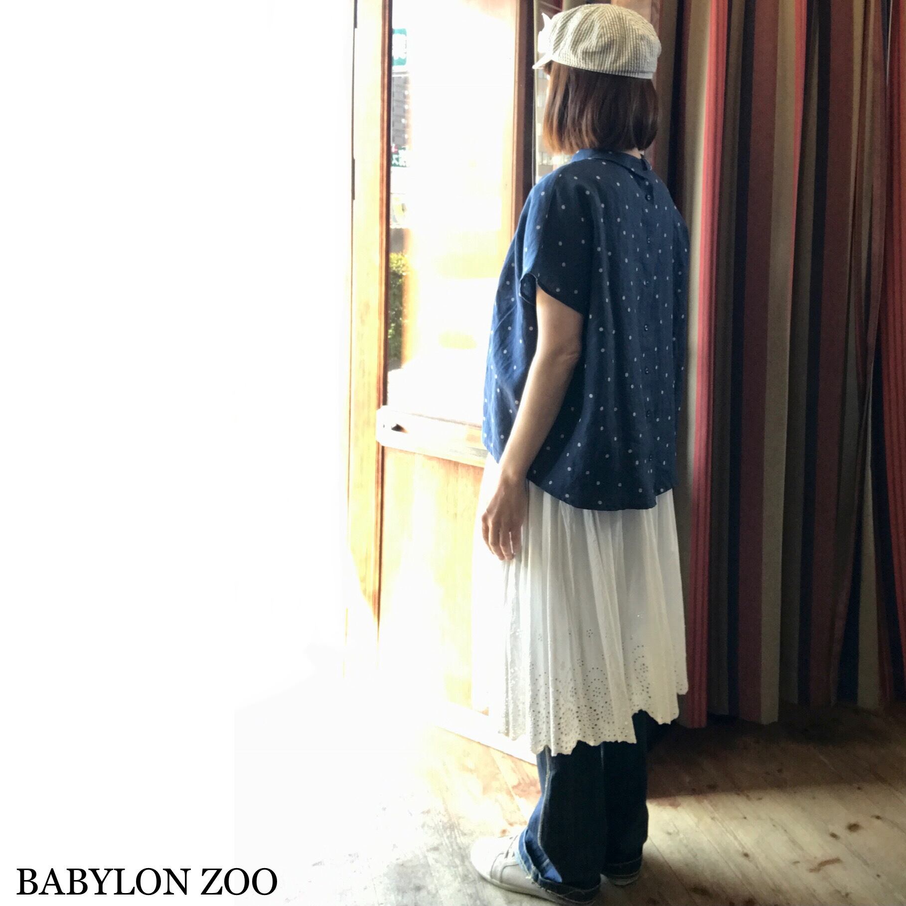 blue willowのリネンドットプリントチビ衿ブラウス。