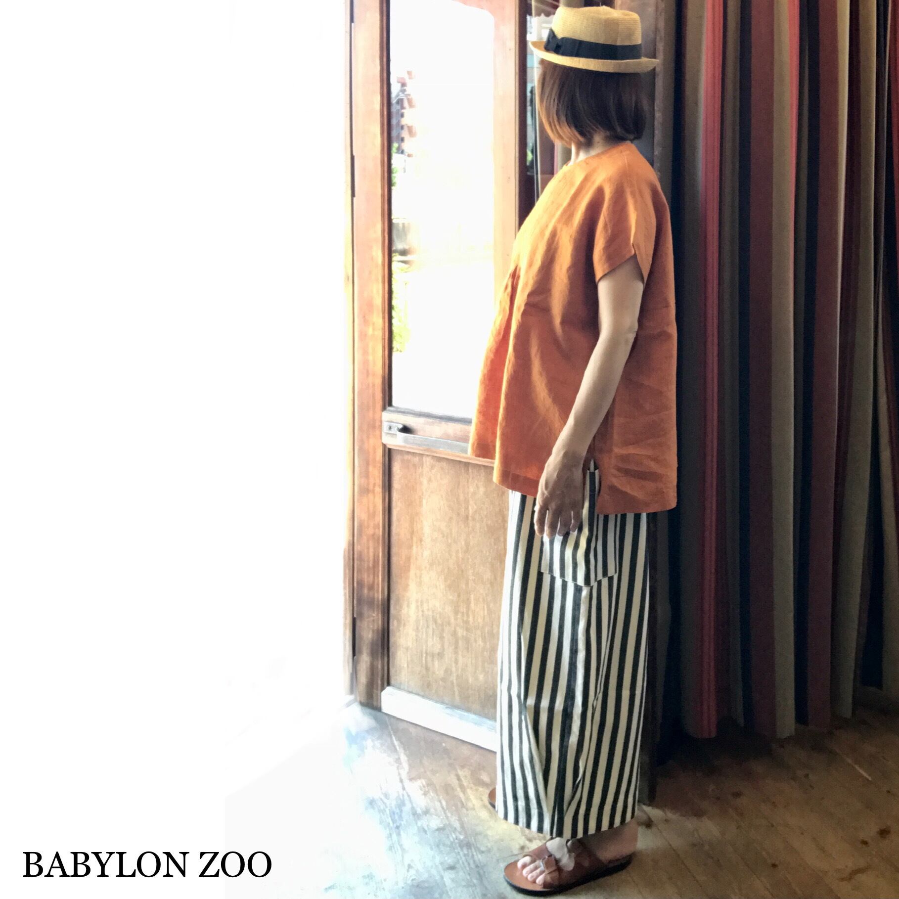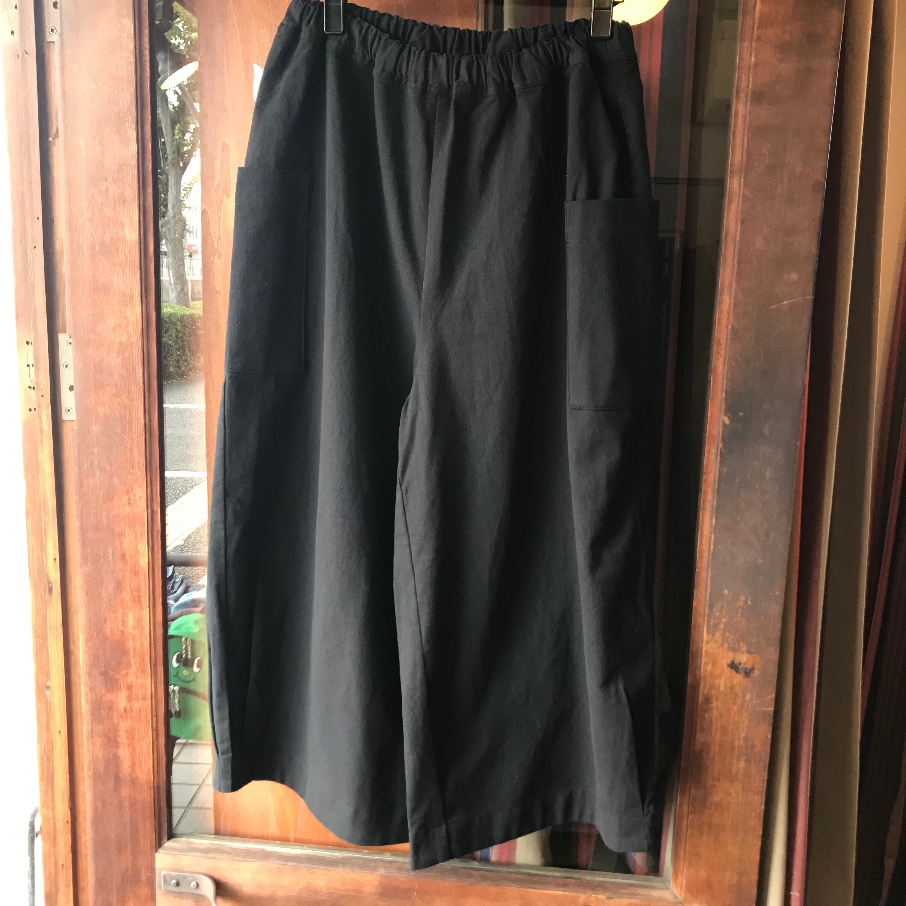 サイドに大きめのポケット。裾はタックを入れてやや絞るデザインに。