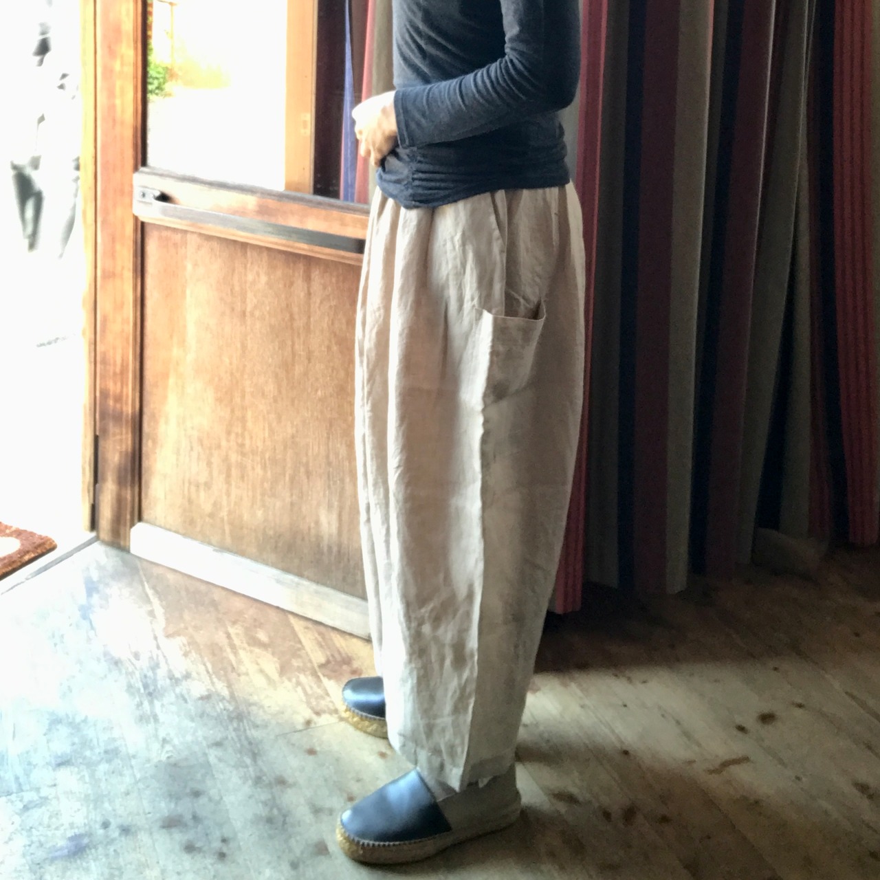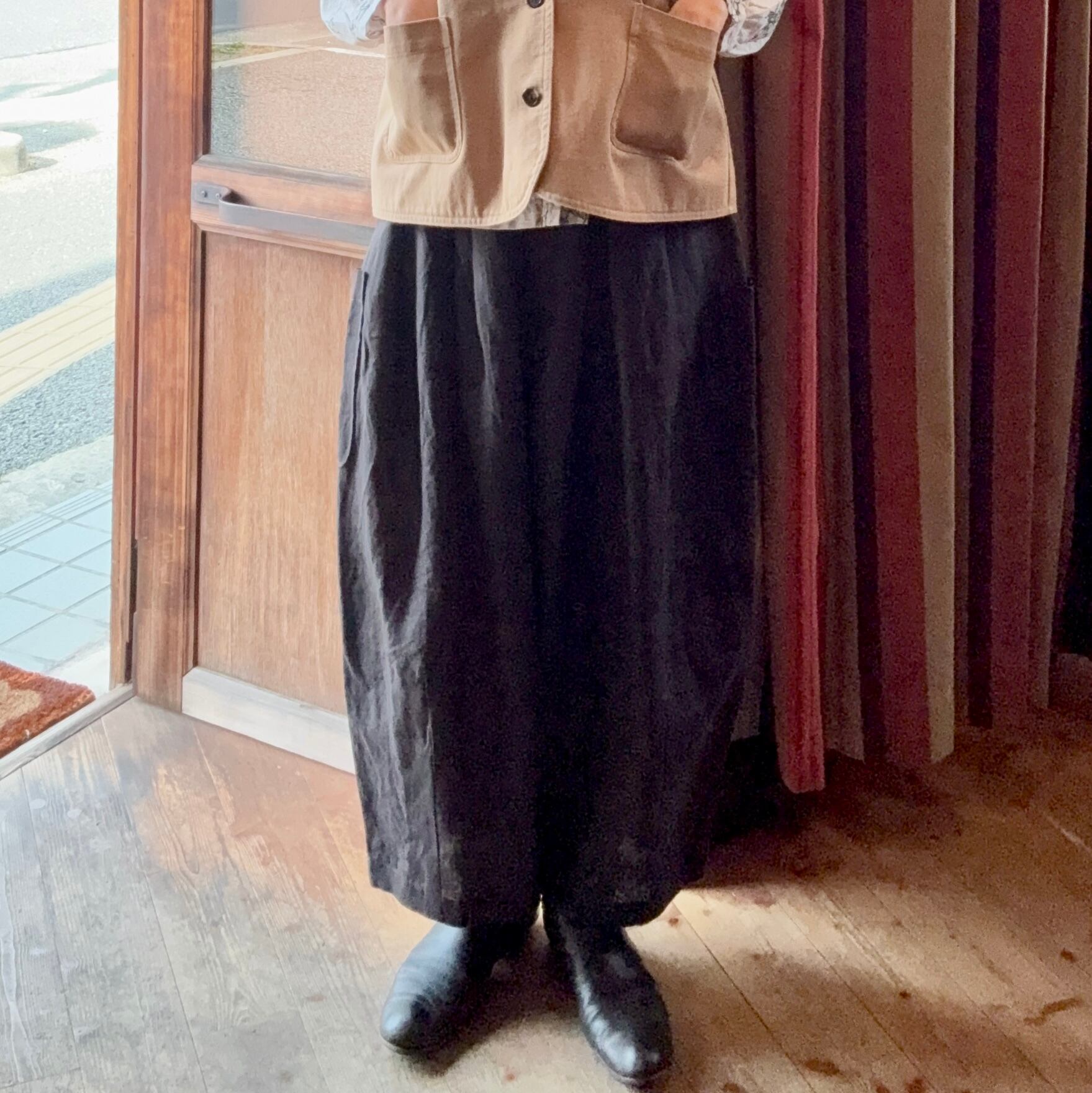 《ダークグレーのみ》blue willowのリネン平織バルーンパンツ