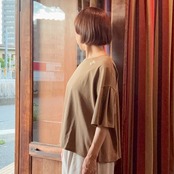 《モカのみ》blue willowのフラワー刺繍タックスリーブTシャツ
