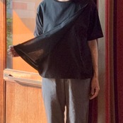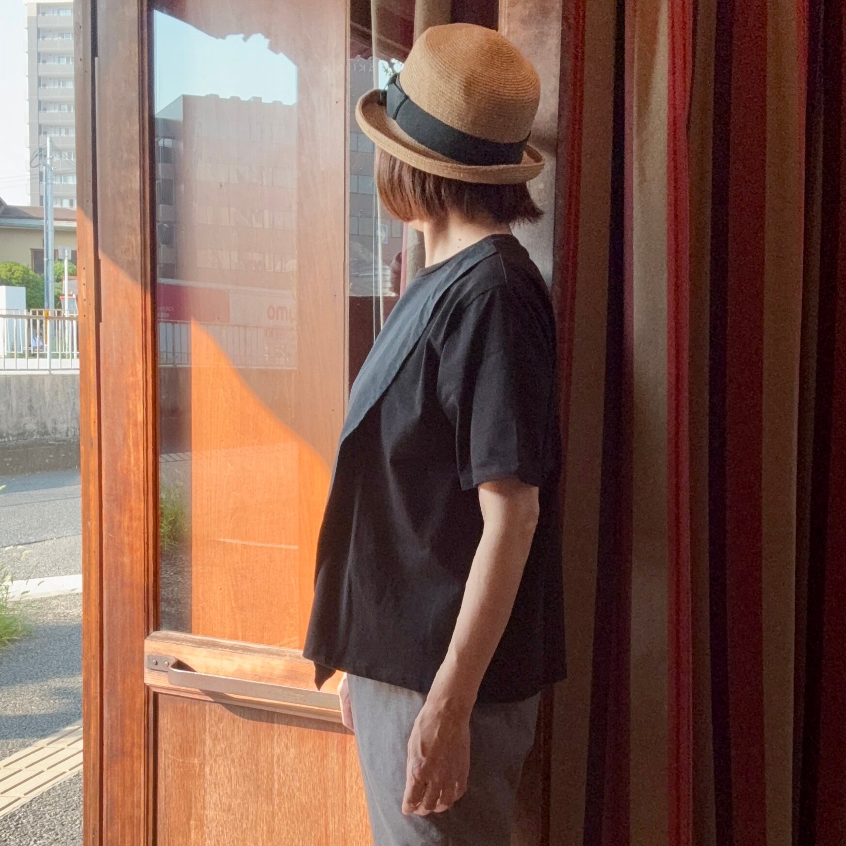 さらりと滑らかな触り心地のコットンスムース天竺素材と、軽やかなコットンダンプ素材の別布パーツを重ねたTシャツ。