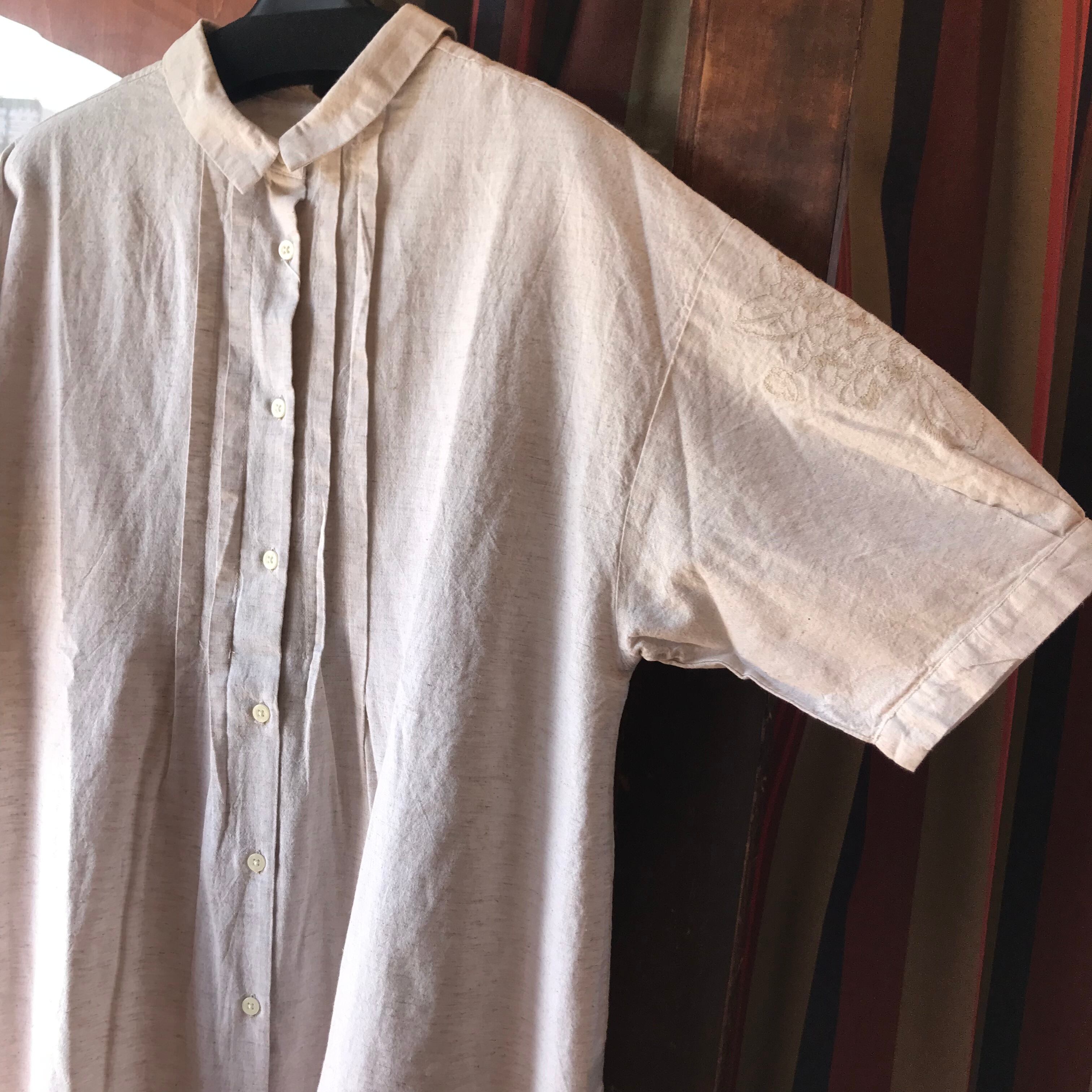 tukuroiの紫陽花刺繍コットンリネン2wayロングシャツ