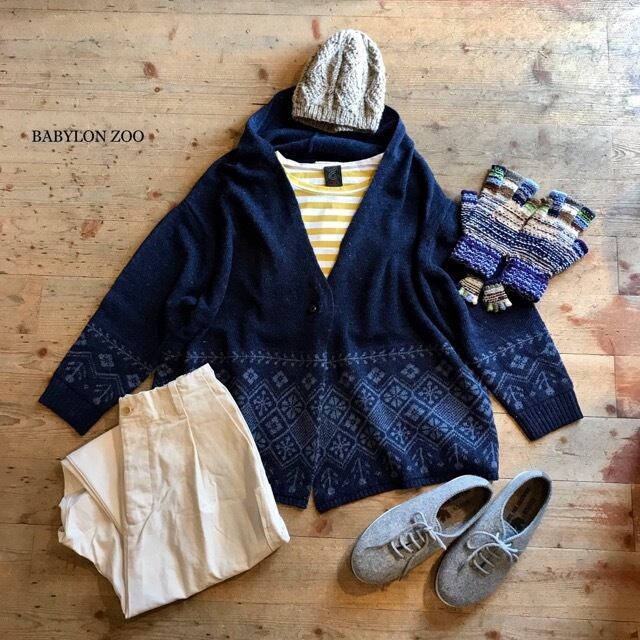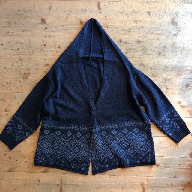 雪の結晶のような編み込み模様がポイントのゆったりカーディガン。