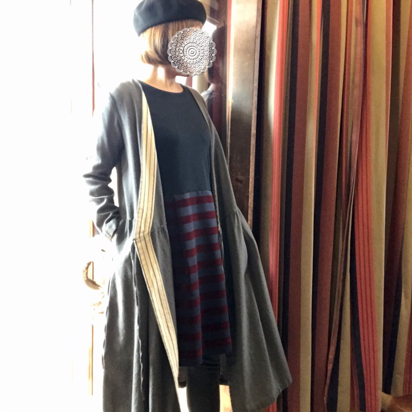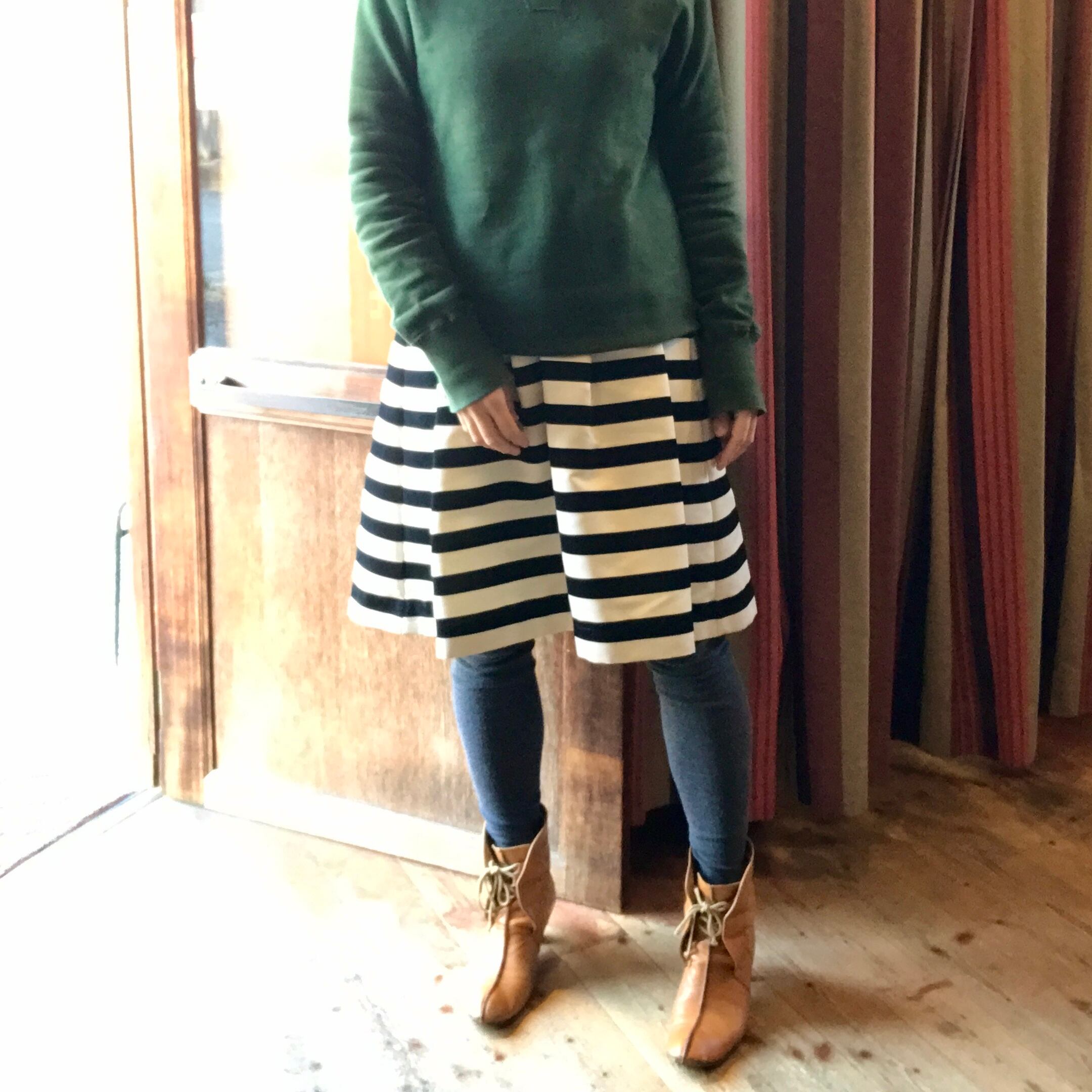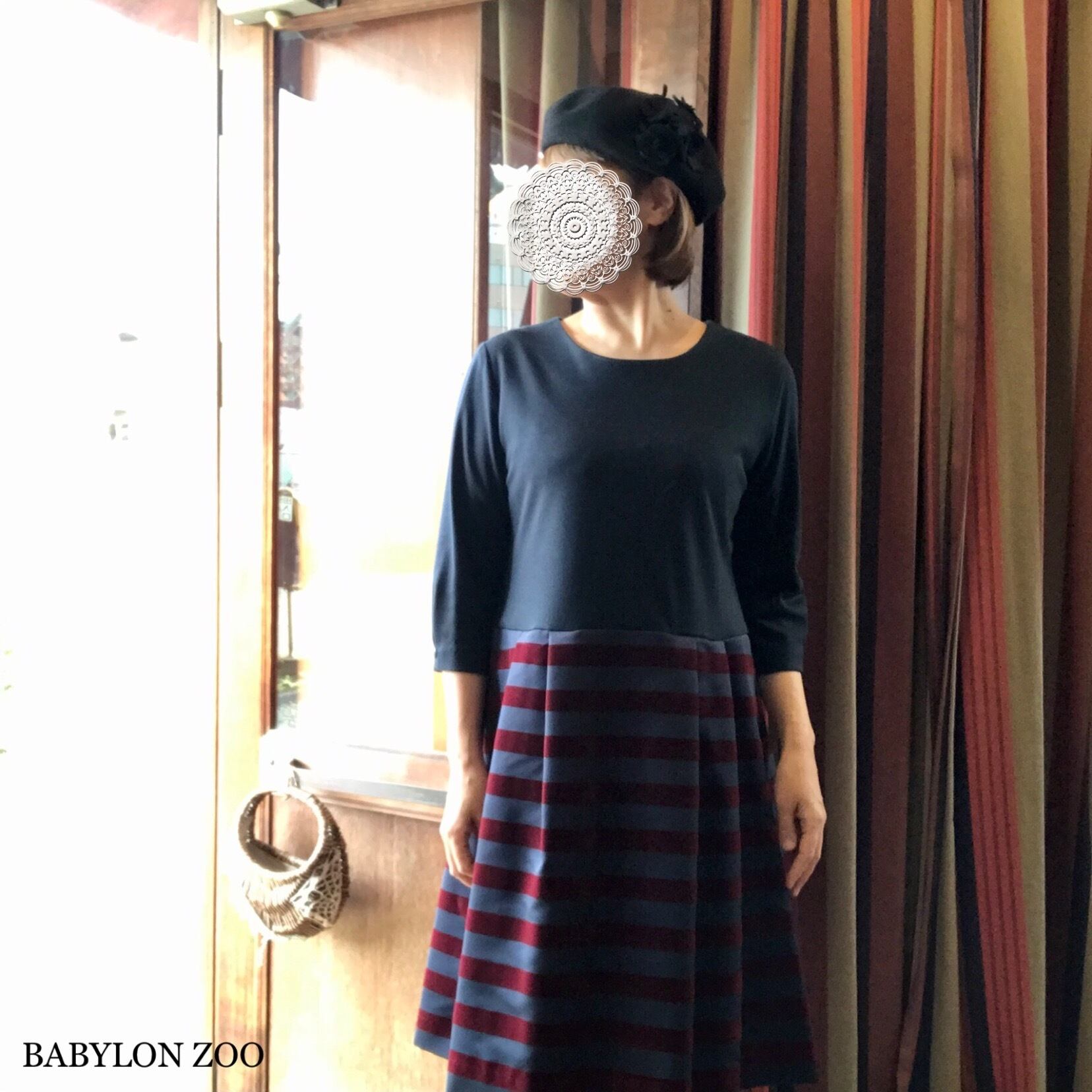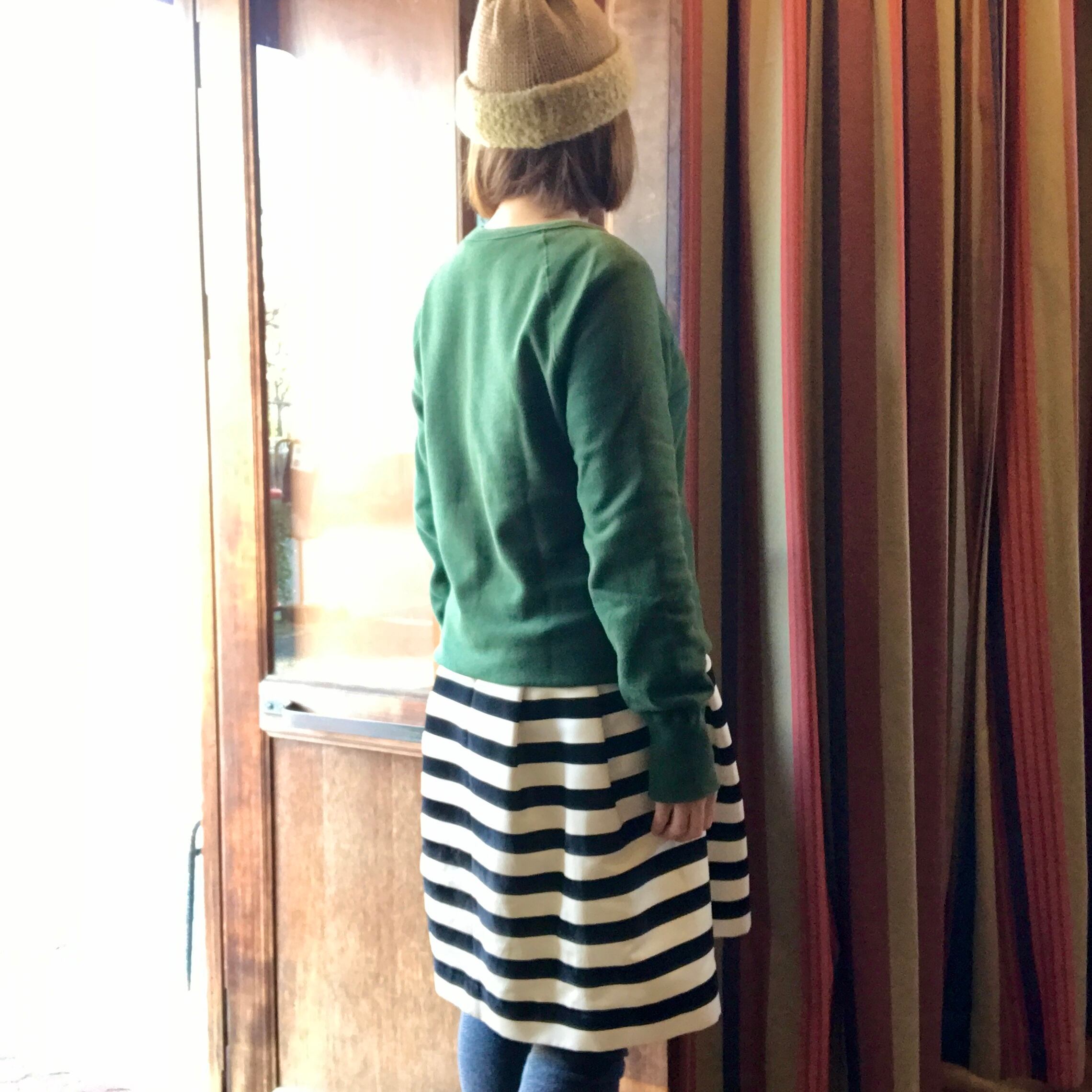 (ホワイト×ブラックのボーダースカートのワンピース・色違いは私物です。)