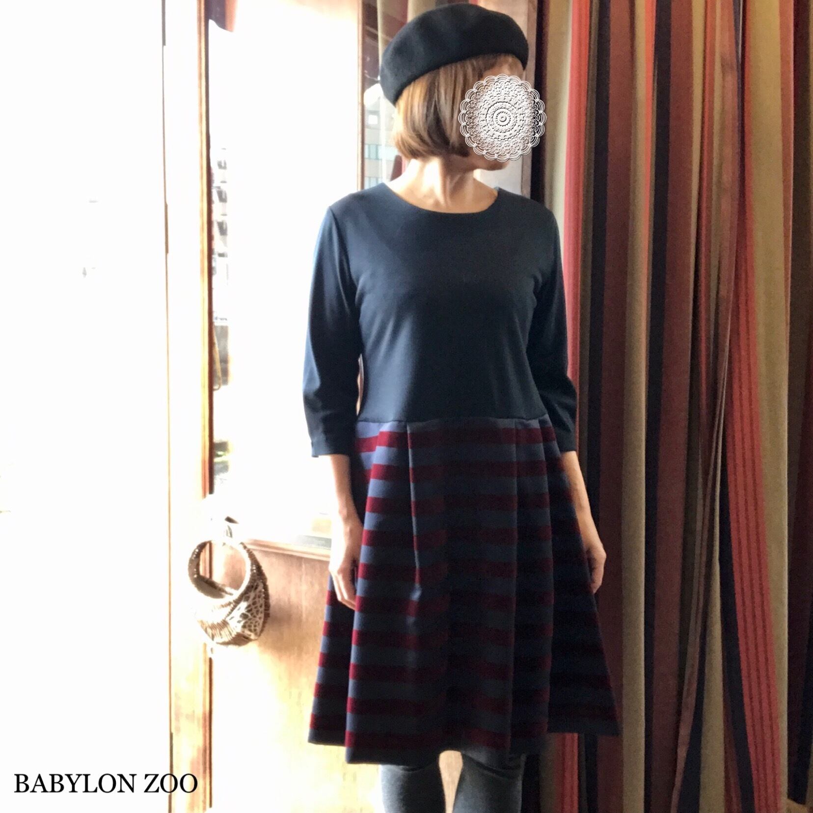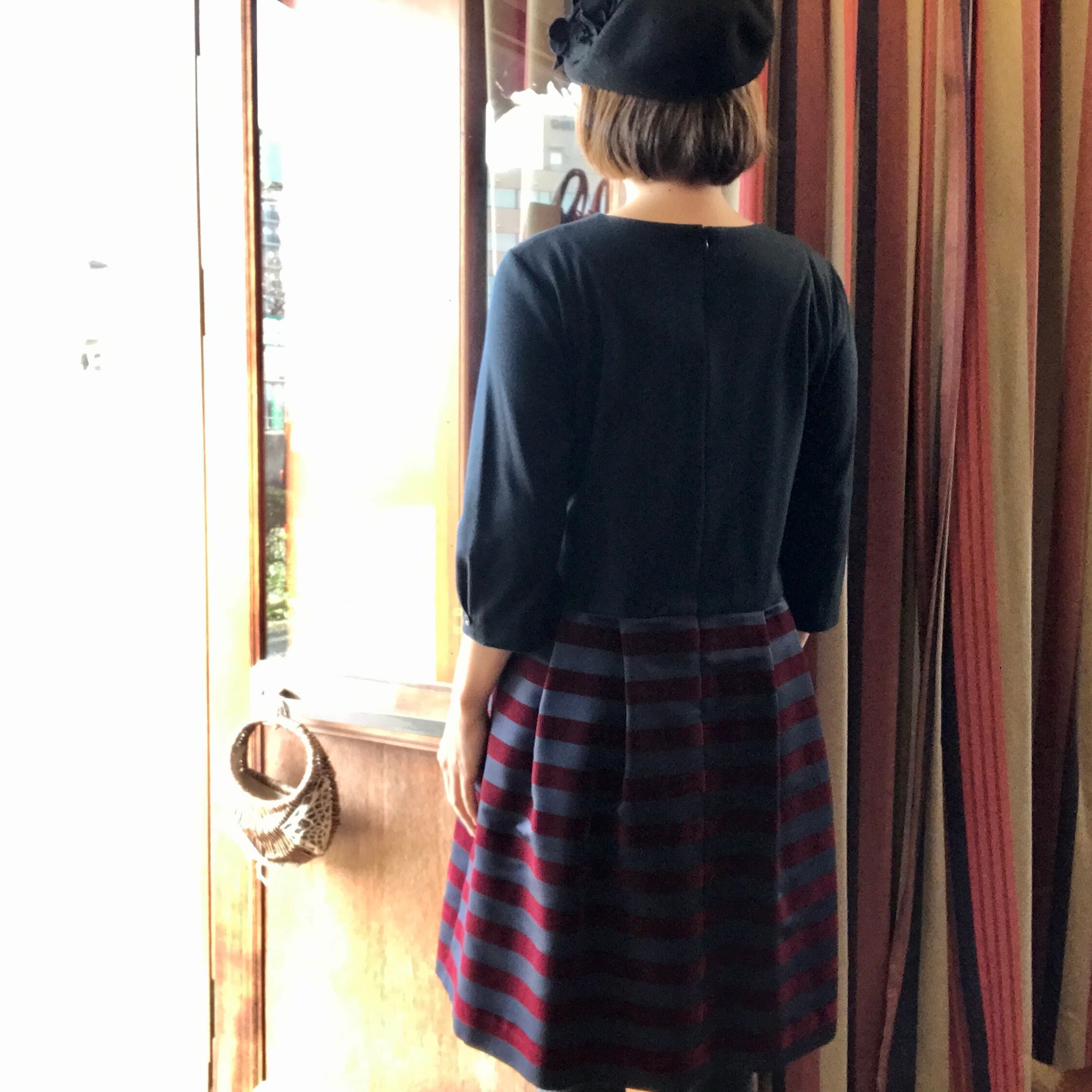 inaのフロッキーボーダースカート切り替えワンピースです。