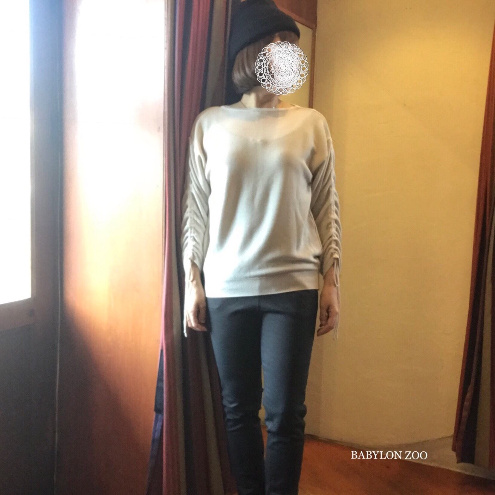 Espeyracのシャーリングスリーブ 後ろVネックニットです。