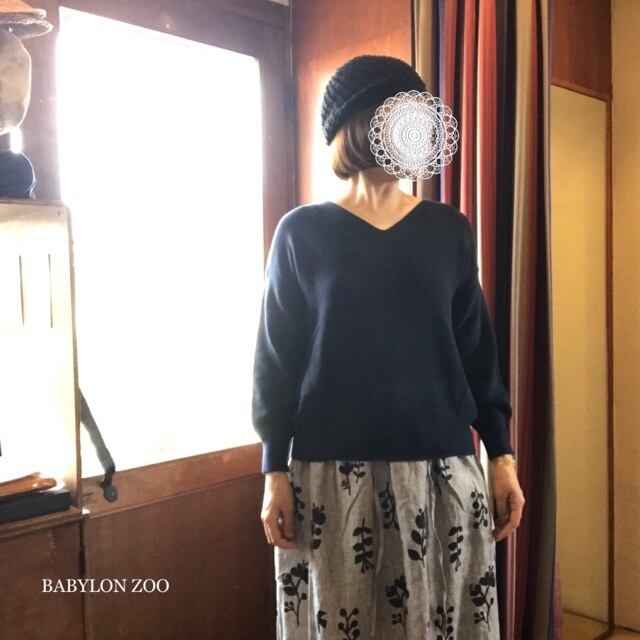 ドロップショルダー、コクーンシルエットでややゆったり。